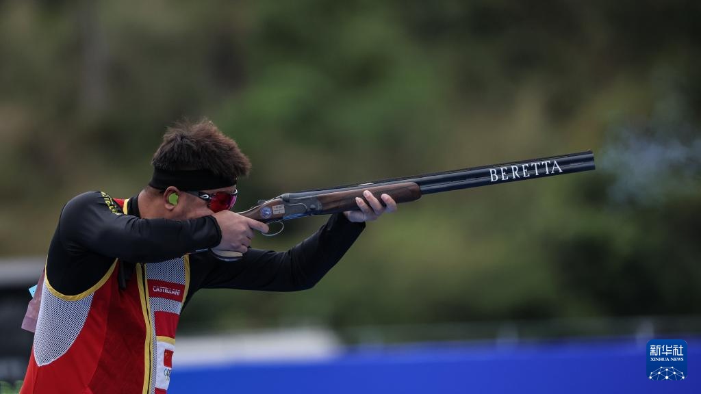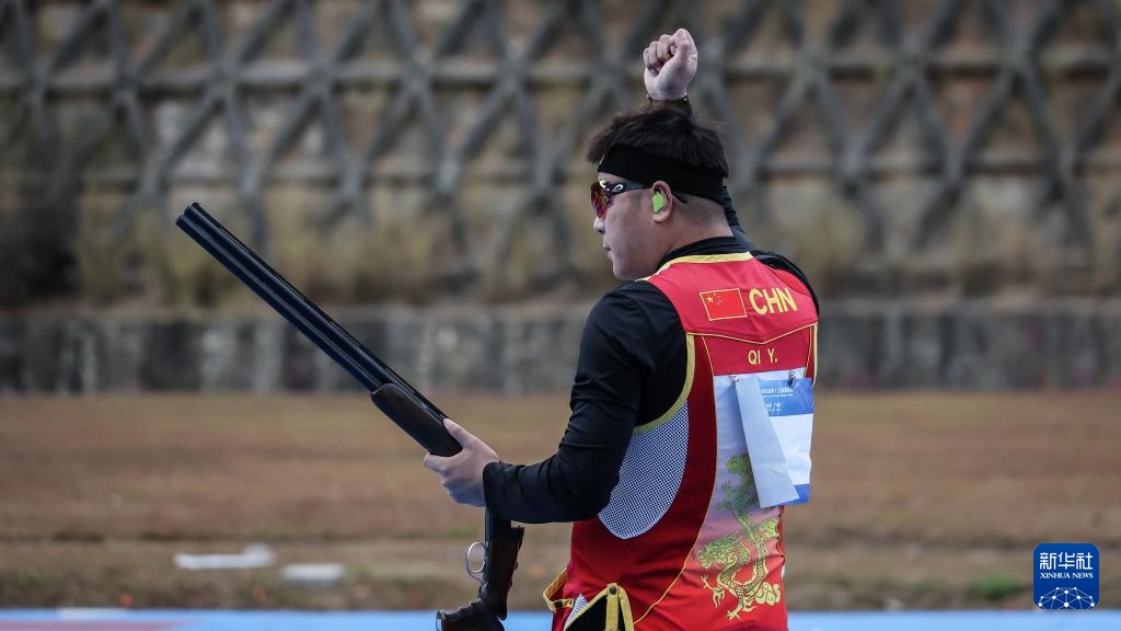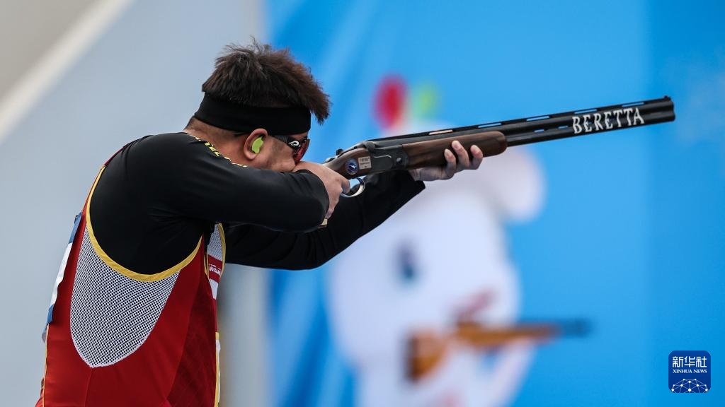当日,第十五届全国运动会射击项目男子飞碟多向决赛在广州举行。