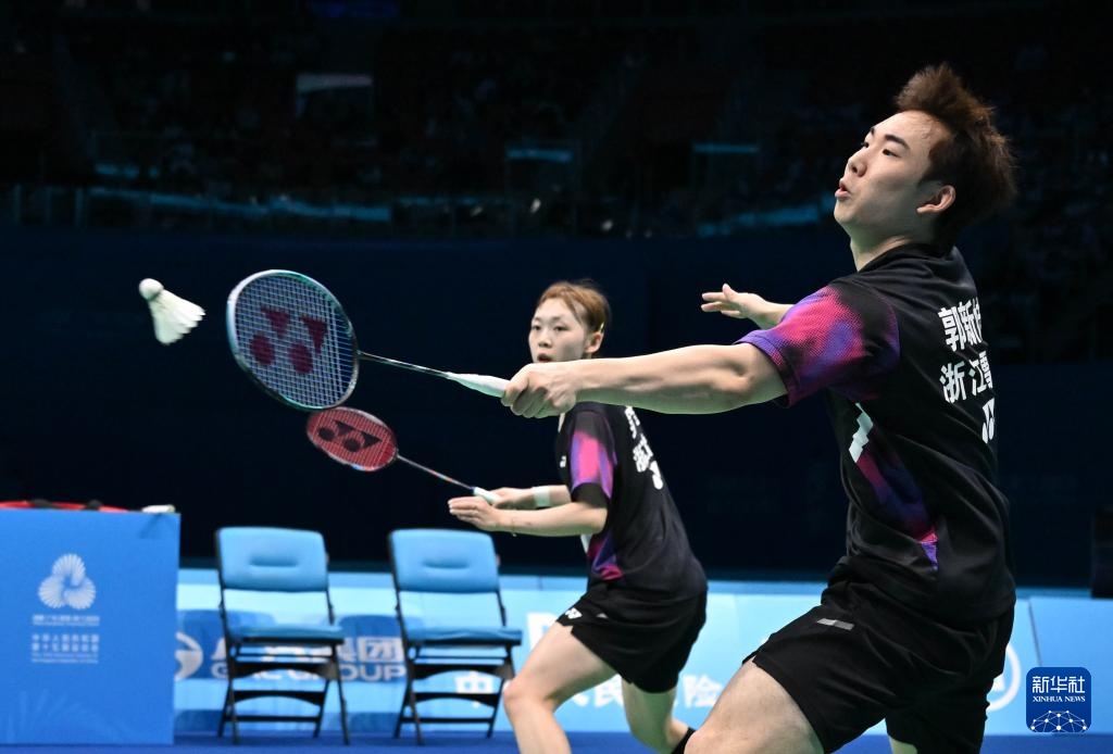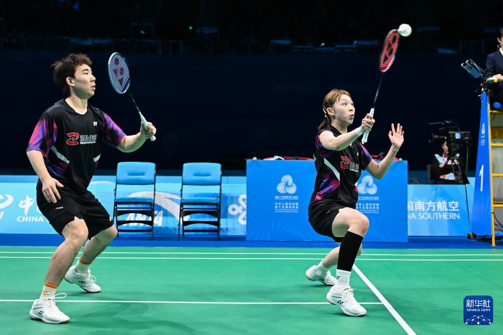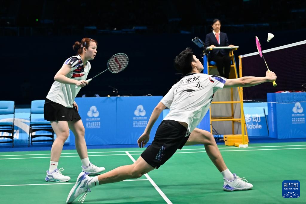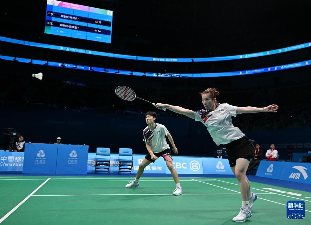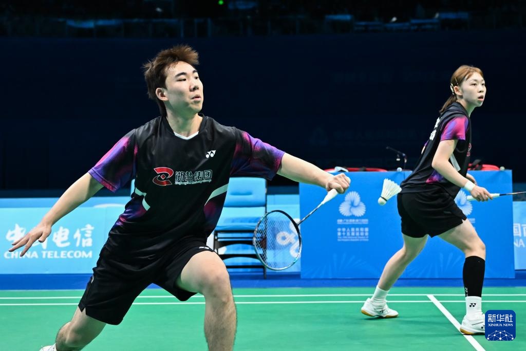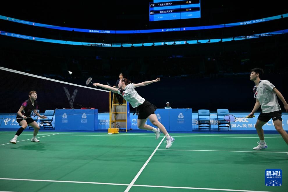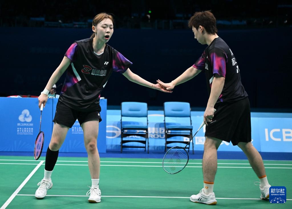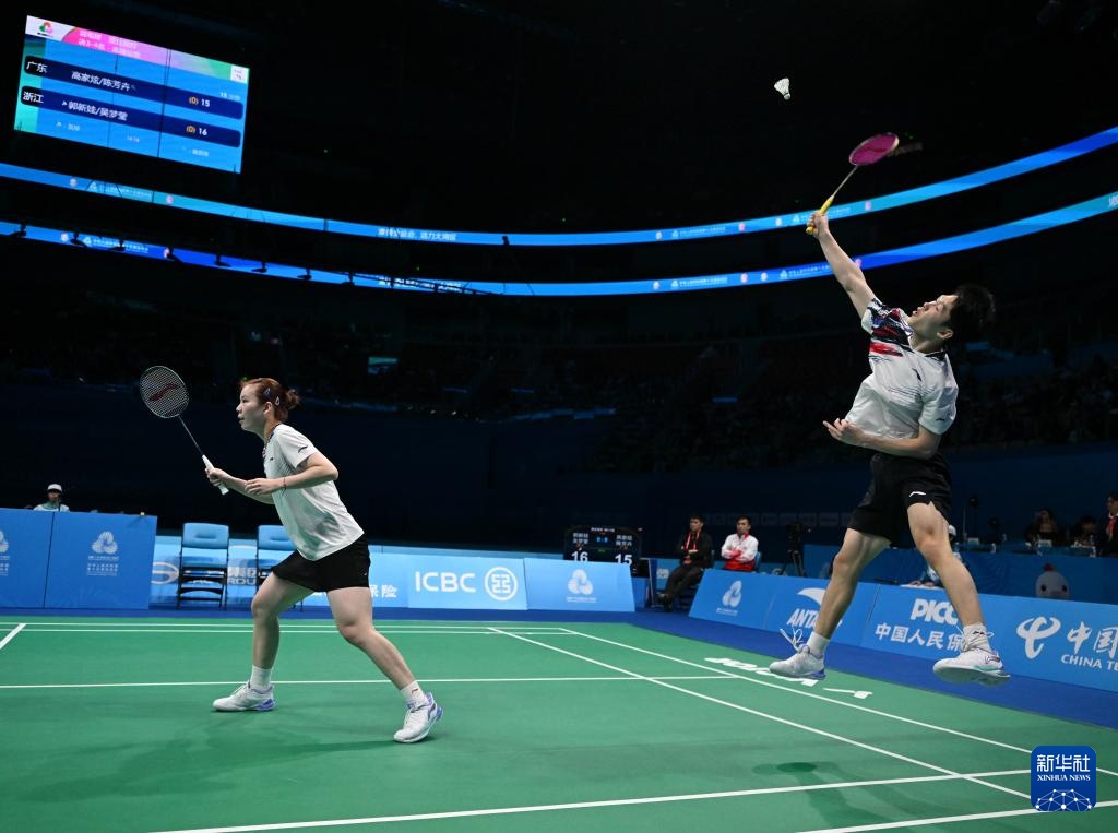 当日,在深圳举行的第十五届全国运动会羽毛球混合双打3-4名决赛中,浙江队组合郭新娃/吴梦莹2比0战胜广东队组合高家炫/陈芳卉,获得季军。