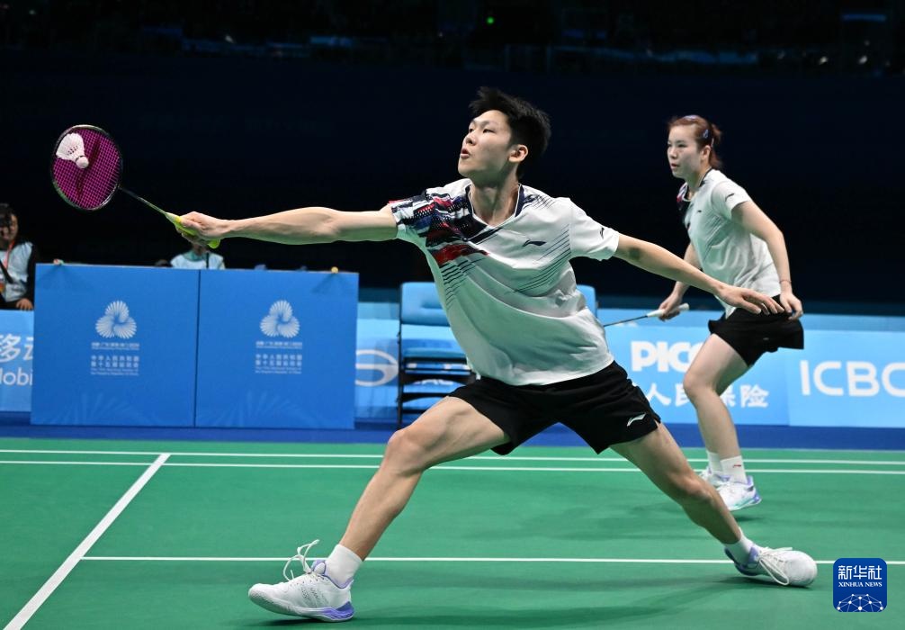 11月19日,广东队组合高家炫(右)/陈芳卉(中)在比赛中。