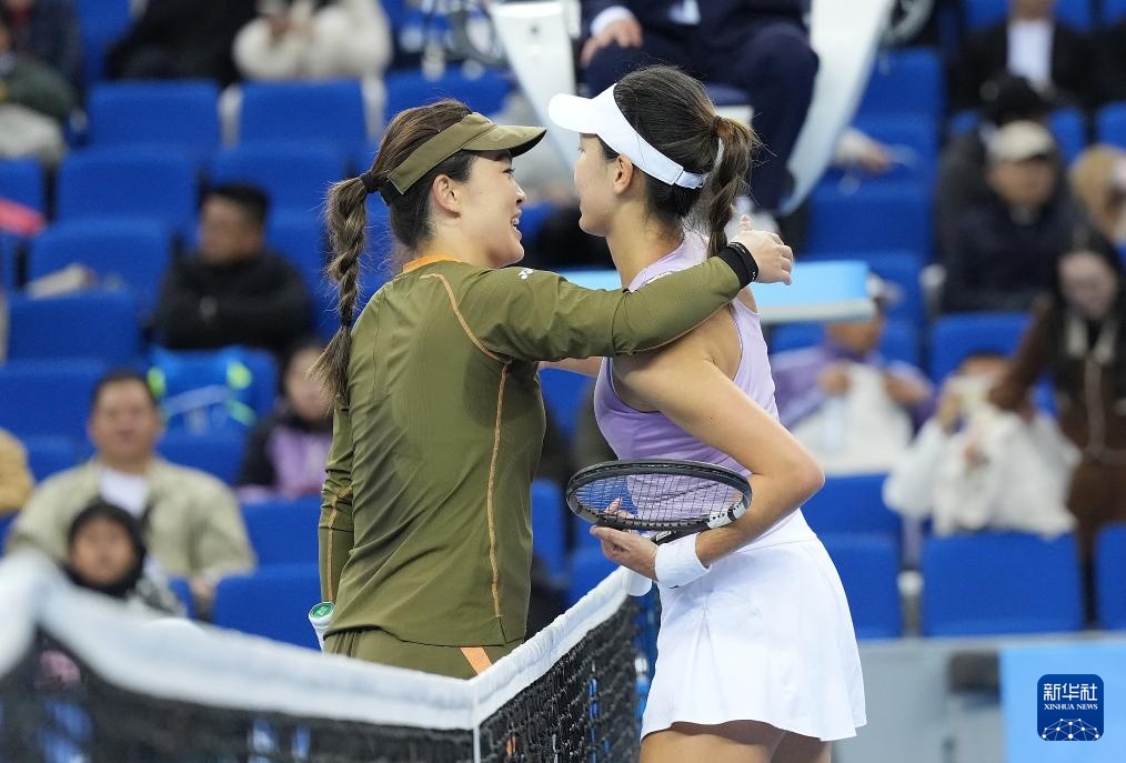 11月19日,安徽队选手朱琳(左)与广东队选手王欣瑜在赛后拥抱
