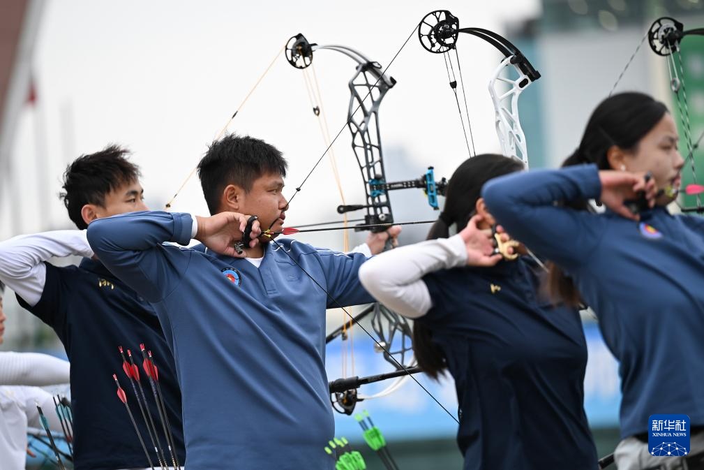 当日,第十五届全国运动会射箭项目复合弓混合团体排名赛在广东深圳举行。