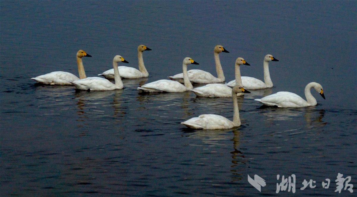 11月19日清晨,湖北当阳季家湖晨雾渐散,一群小天鹅在湖面上蹁跹起舞,为这片水域增添了灵动生机。这是小天鹅连续第六年如约飞抵此处,将季家湖作为越冬家园。