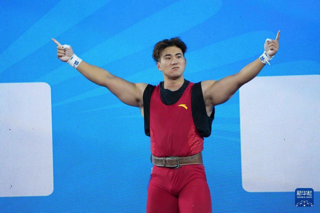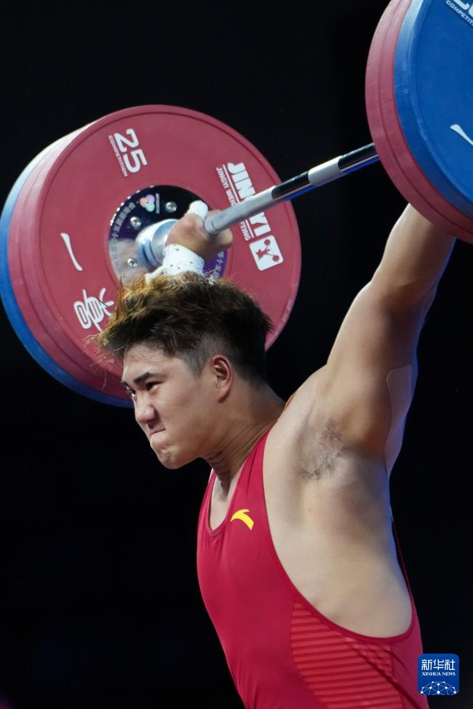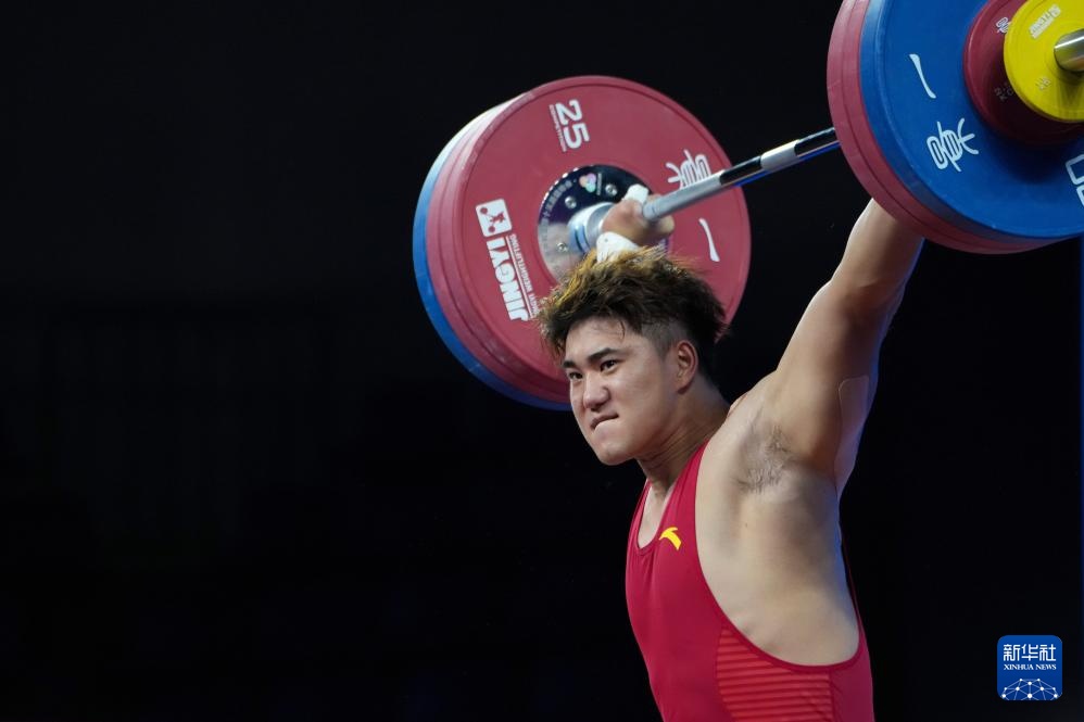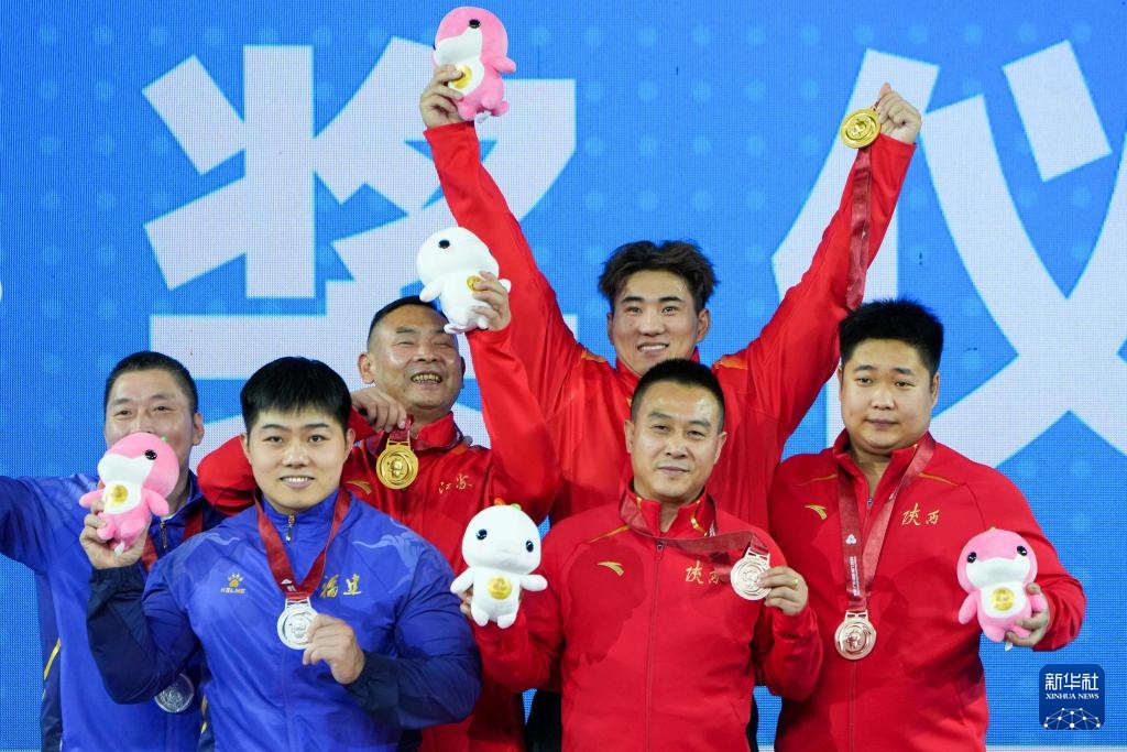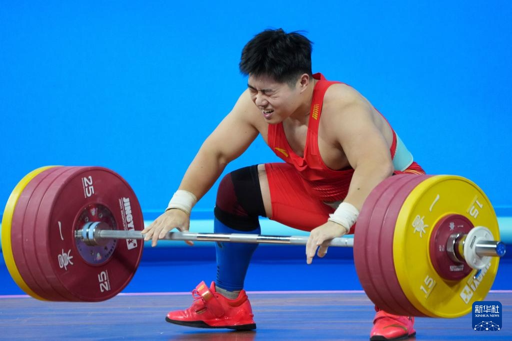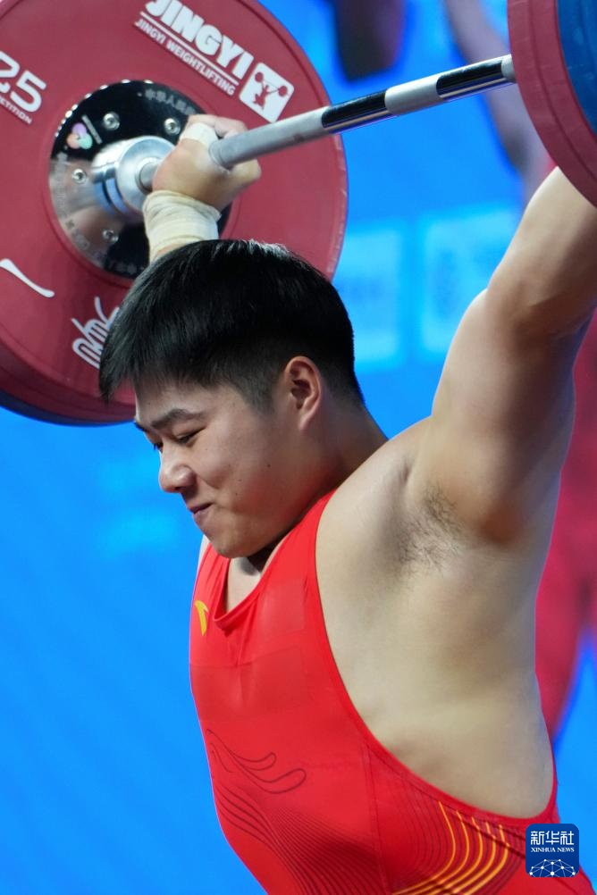 11月19日,江苏队选手钱飞翔在抓举比赛中。他获得冠军。