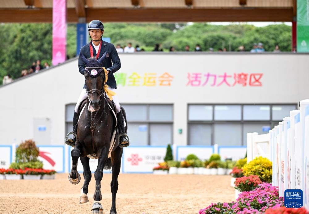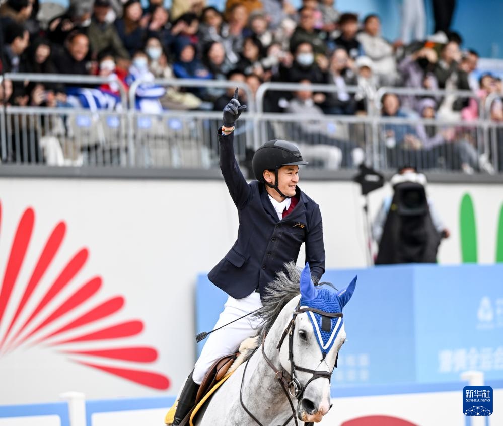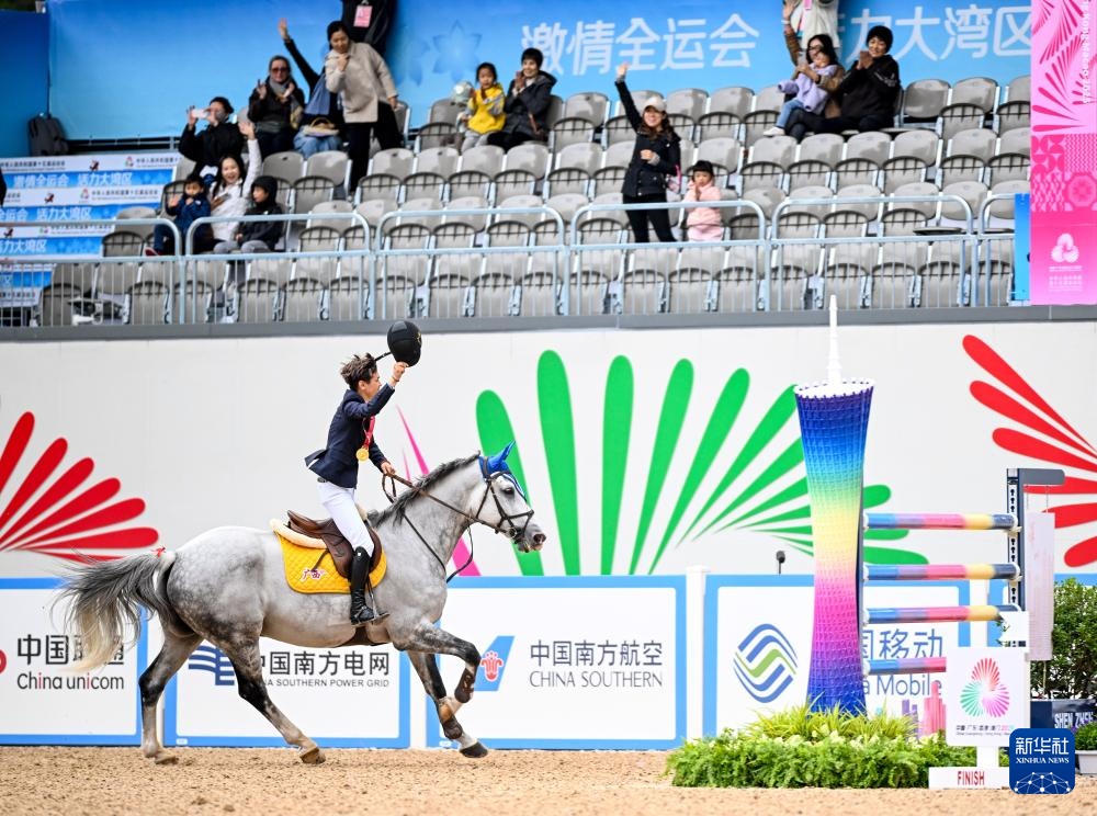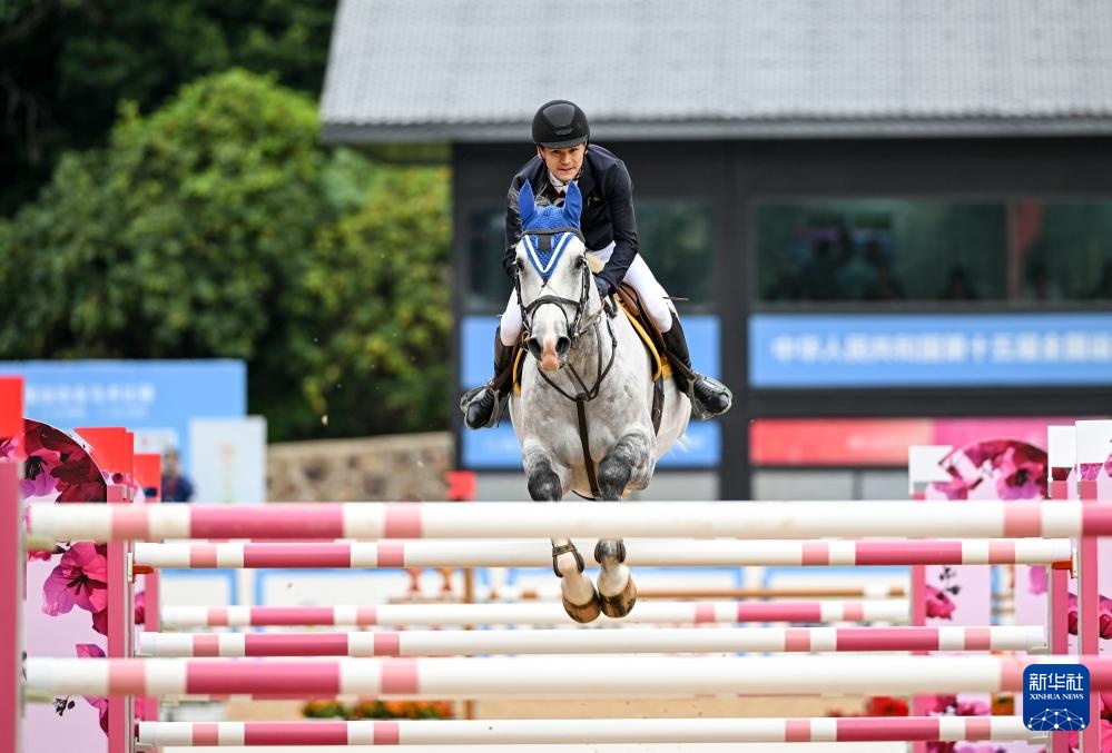 当日,第十五届全国运动会马术场地障碍个人赛决赛在深圳举行。
