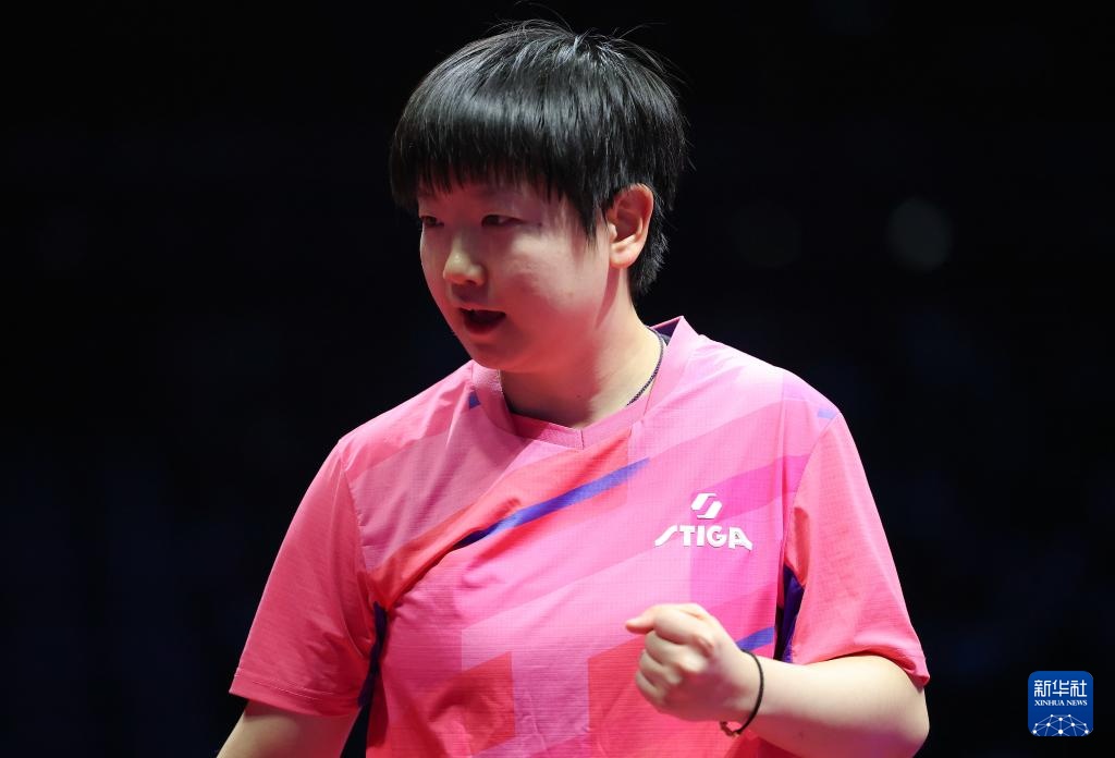 11月19日,河北队选手孙颖莎在女单比赛中。最终,她3比1战胜山东队选手范思琦。