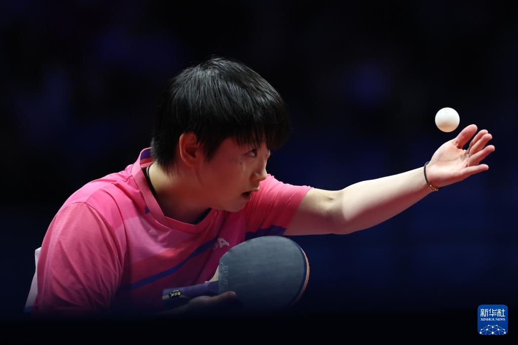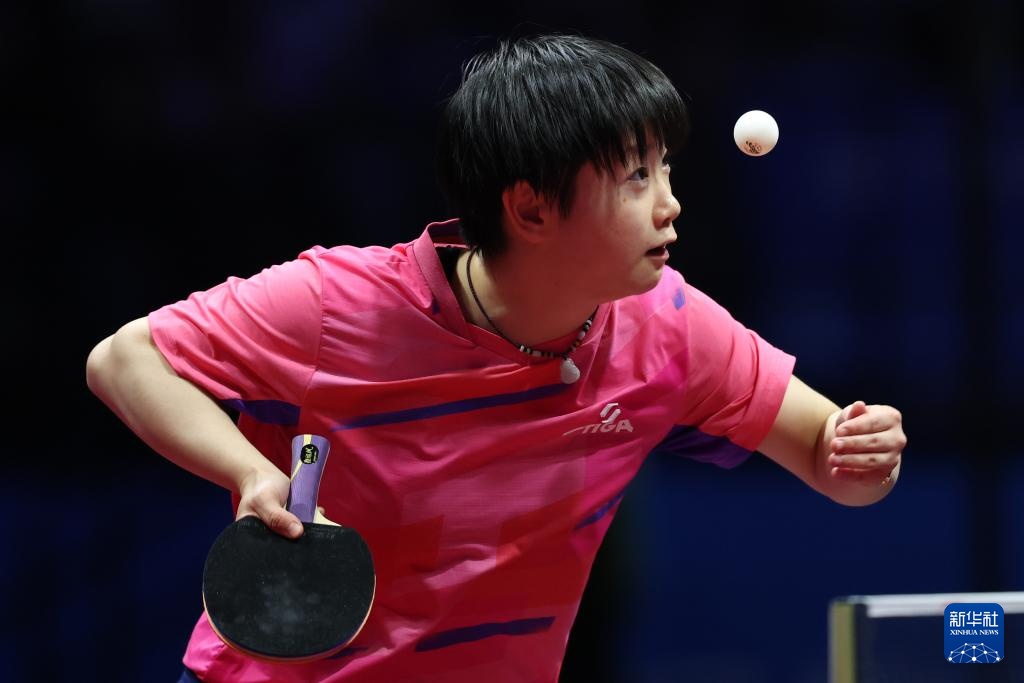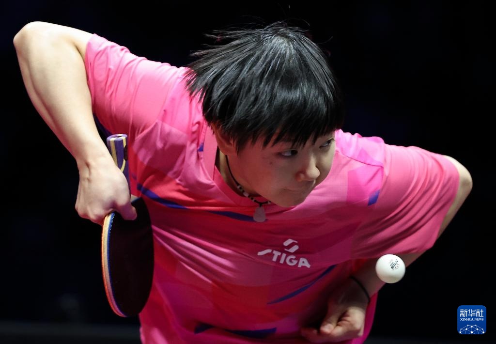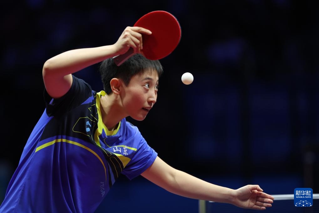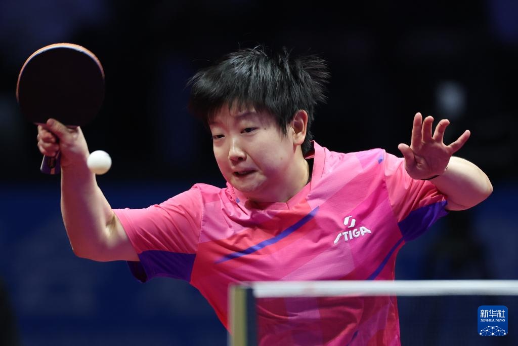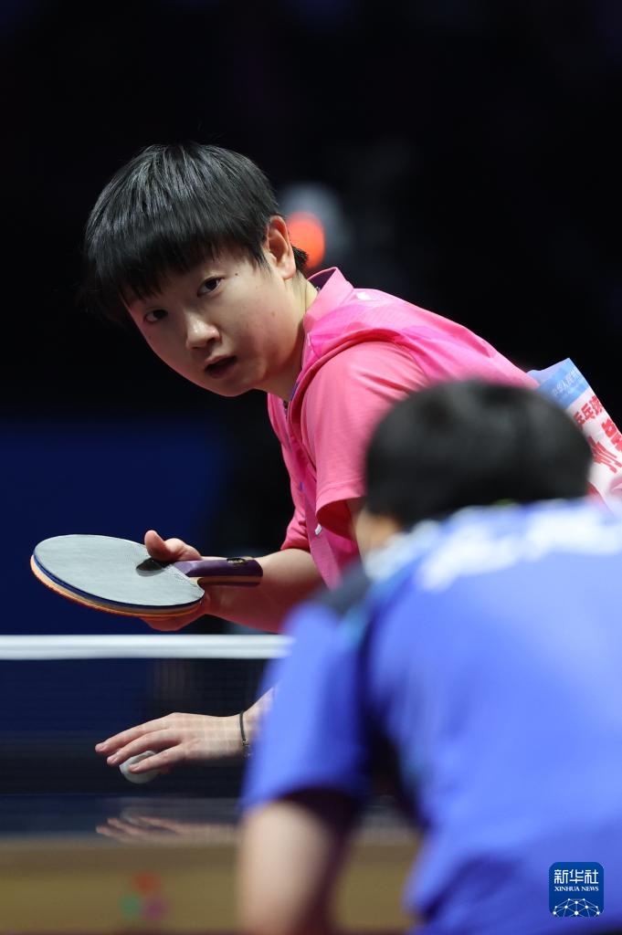 11月19日,河北队选手孙颖莎在女单比赛中回球。最终,她3比1战胜山东队选手范思琦。