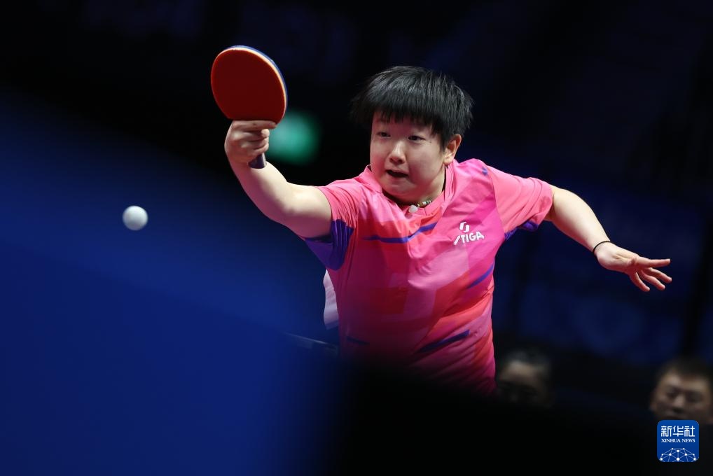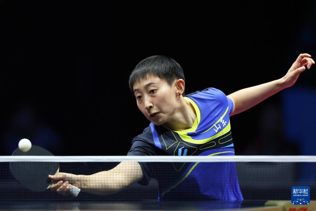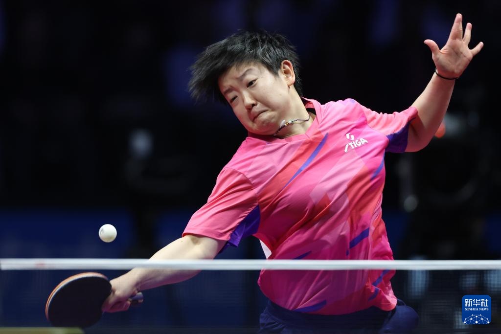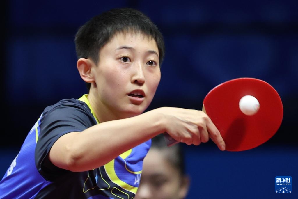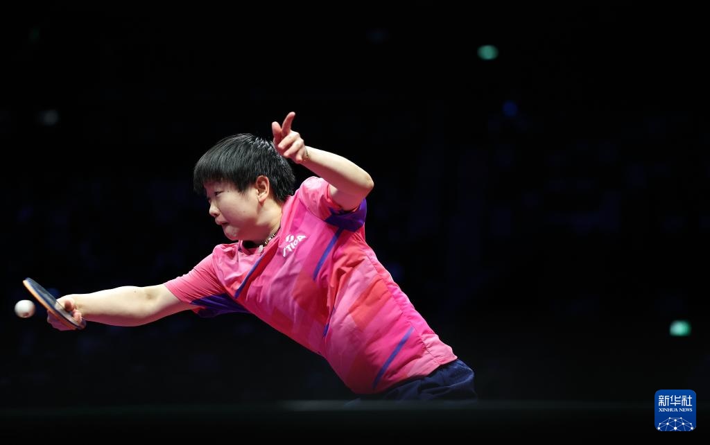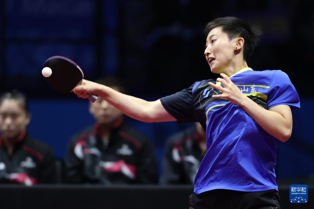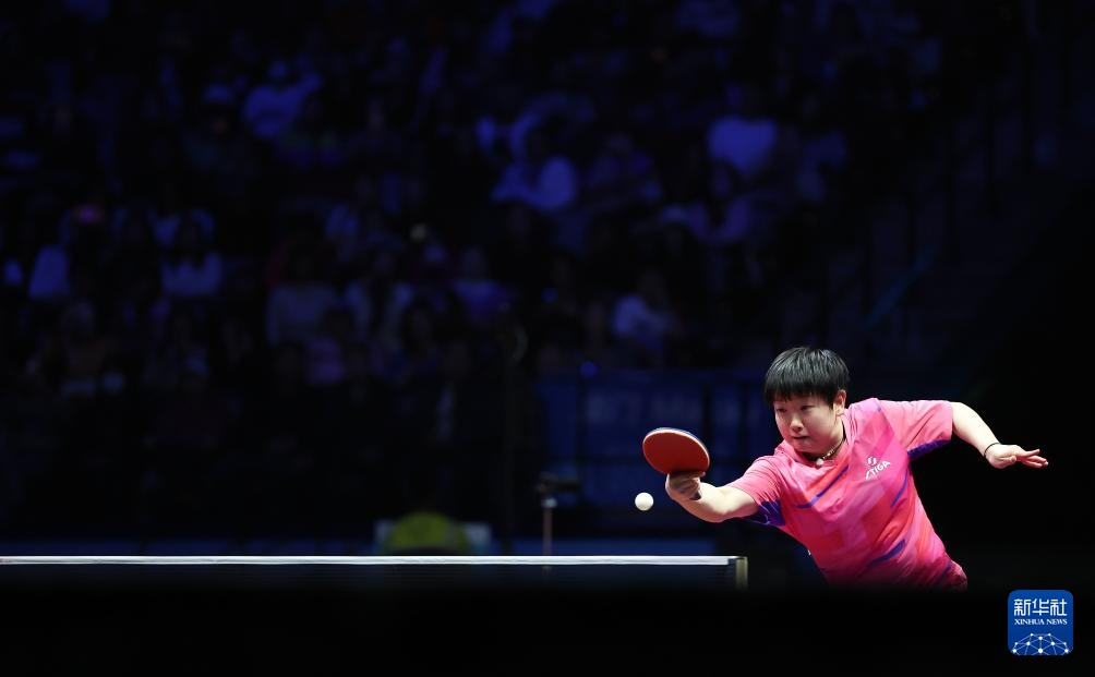 11月19日,河北队选手孙颖莎在女单比赛中回球。最终,她3比1战胜山东队选手范思琦。