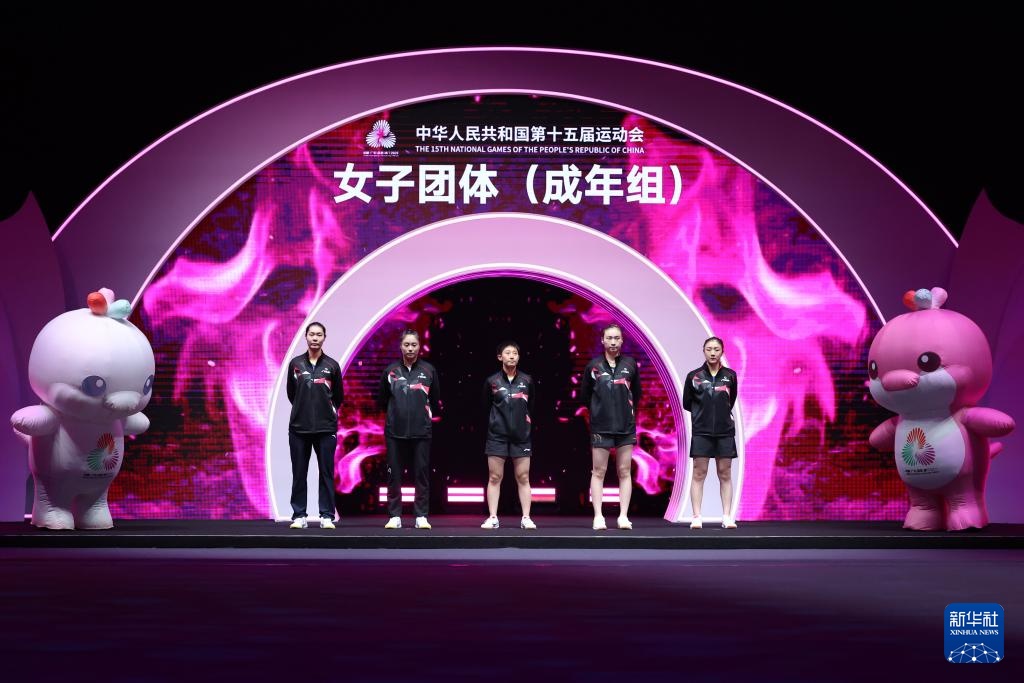 当日,在澳门举行的第十五届全国运动会乒乓球女子团体金牌赛中,河北队对阵山东队。