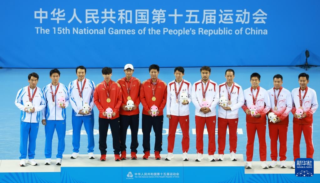 当日,第十五届全国运动会网球男子双打颁奖仪式在广东横琴举行。