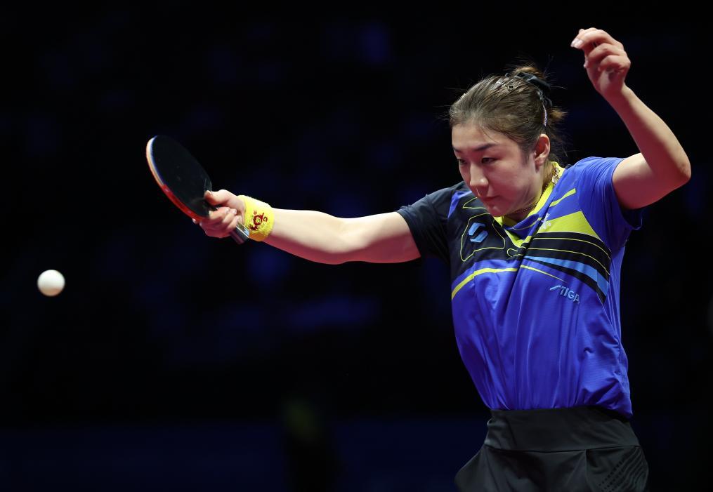 11月19日,山东队选手陈梦在女单比赛中回球。陈梦3:0战胜河北队选手王添艺。新华社记者 梁旭 摄