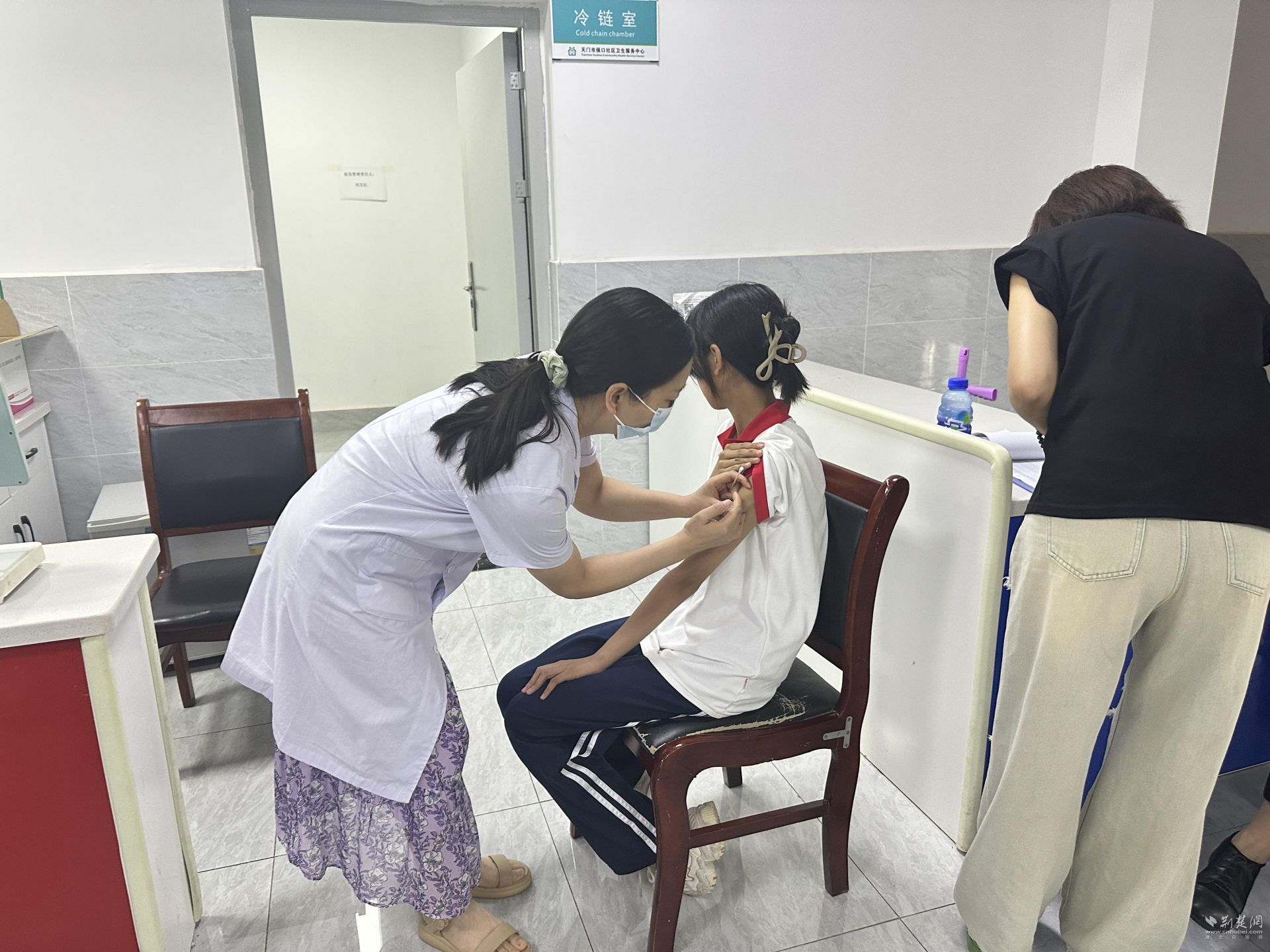 十堰市张湾区红卫中心接种门诊为东汽四中初一女生免费接种HPV疫苗