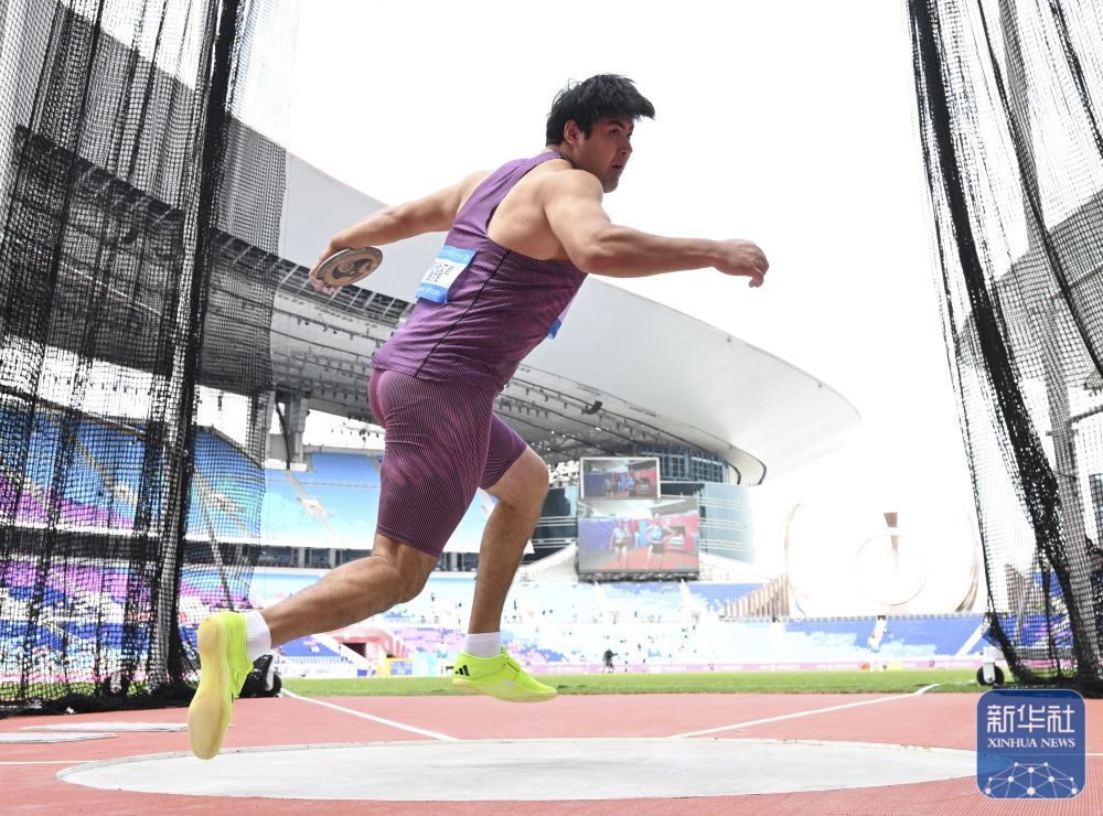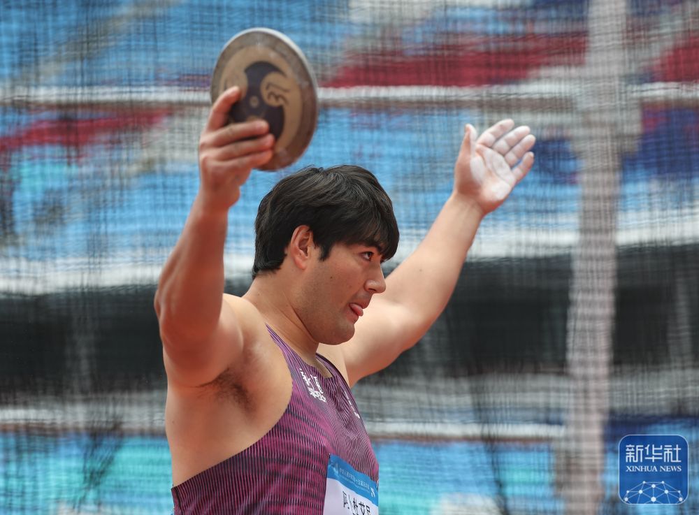 ↑ 新疆队选手阿卜杜艾尼·图尔贡在试投前。他以64米40的成绩夺得冠军。新华社记者 江汉 摄
