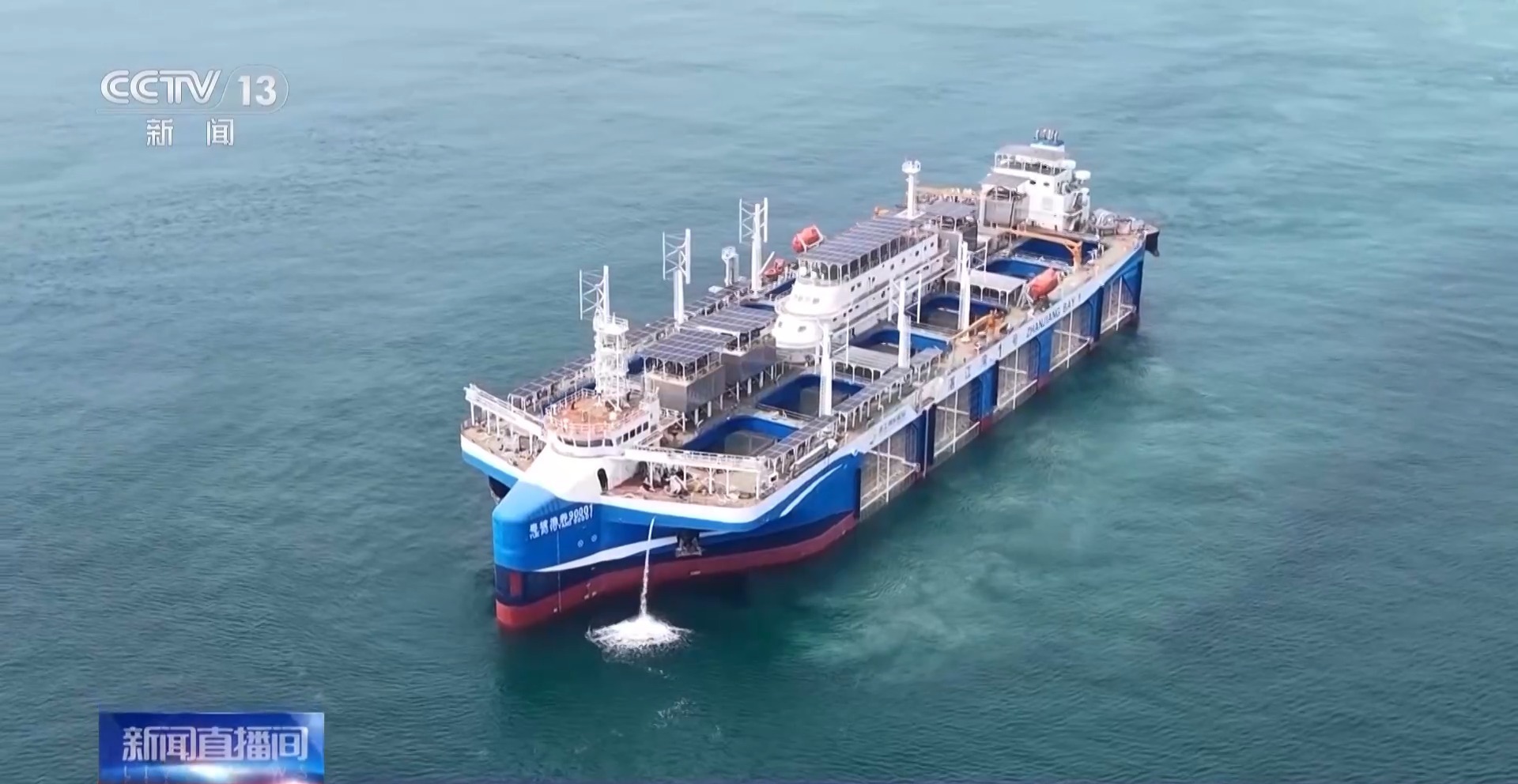 “湛江湾1号”总设计师 陈潇:首创船网融合设计,降低建造和运营成本,提升渔获品质,配备电力推进系统,可自主航行躲避台风,实现动静结合的优化养殖,集自动化、智能化于一体,通过绿色能源自供给、智能投喂、实时监测等系统,实现全流程智慧化管理和全生命周期科学养殖。