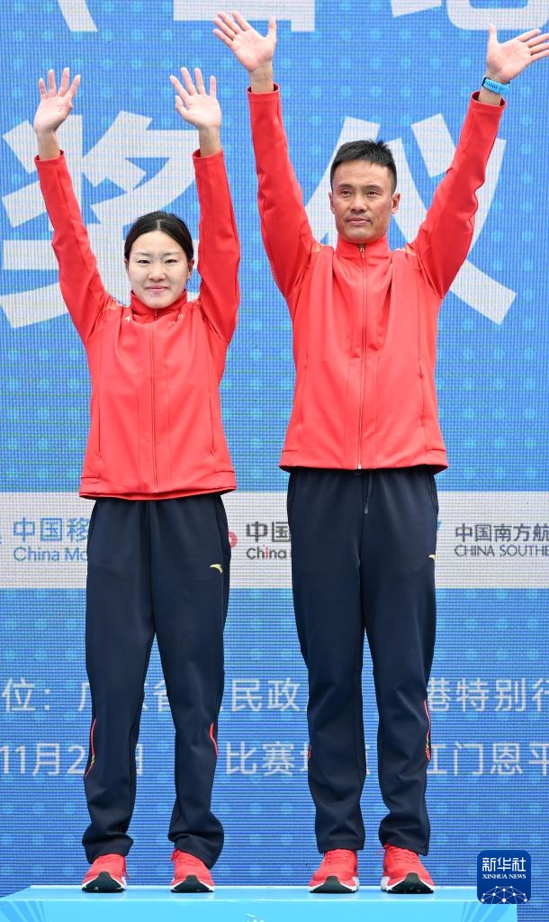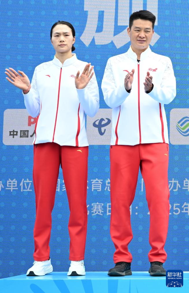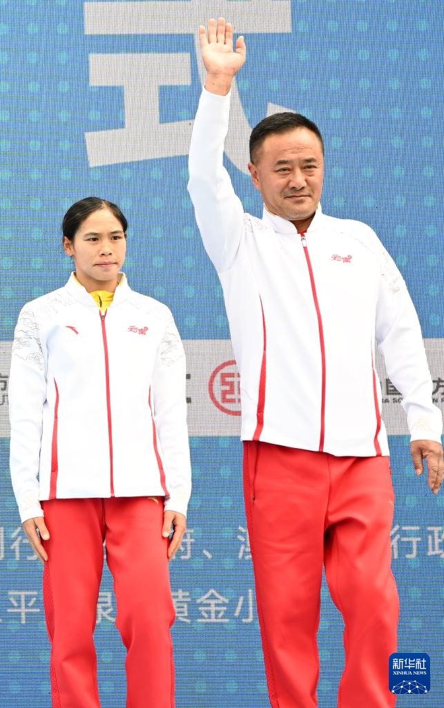 11月20日,季军云南队选手梁正兰(左)和教练在颁奖仪式上。