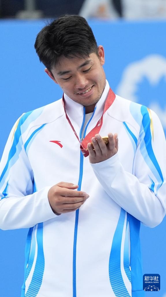 11月20日,获得冠军的浙江队选手吴易昺在颁奖仪式上。