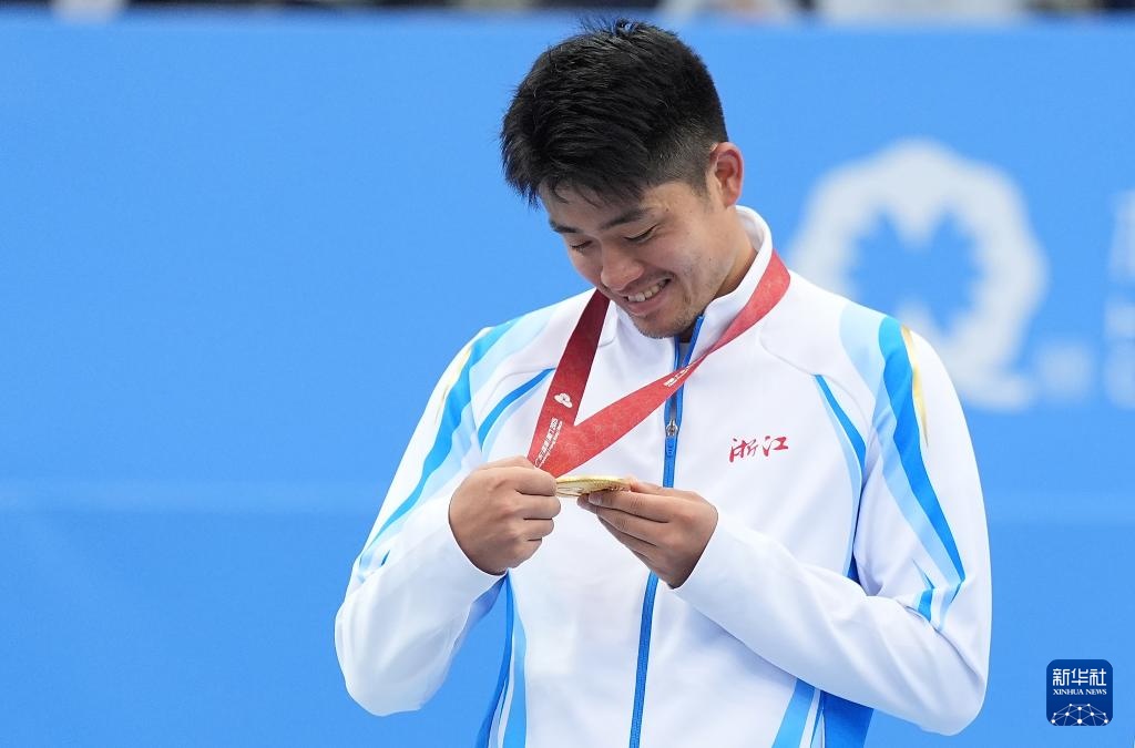 当日,在广东横琴举行的第十五届全国运动会网球项目男子单打决赛中,浙江队选手吴易昺2比1战胜北京队选手商竣程,夺得冠军。