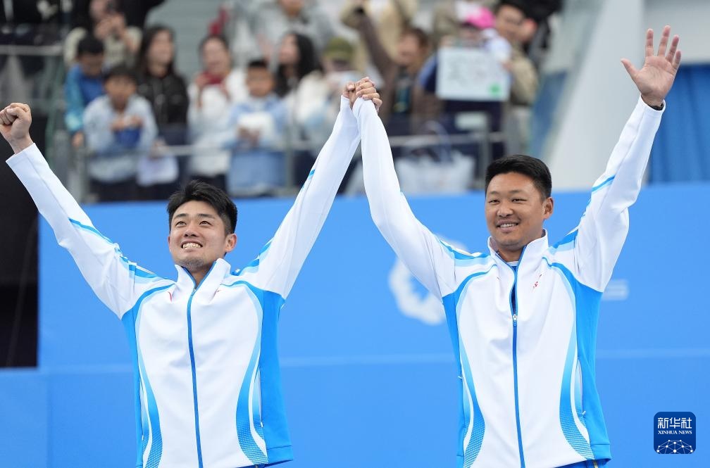 11月20日,浙江队选手吴易昺(上)在比赛后庆祝。