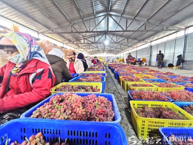 博乐市西域丰农葡萄种植农民专业合作社联合社的分拣车间内,工人们正在分拣葡萄,通过冷链运往国外。石榴云/新疆日报记者 曹华摄