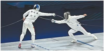 运动员在十五运会击剑项目男子重剑个人决赛中。人民日报记者 王 亮摄