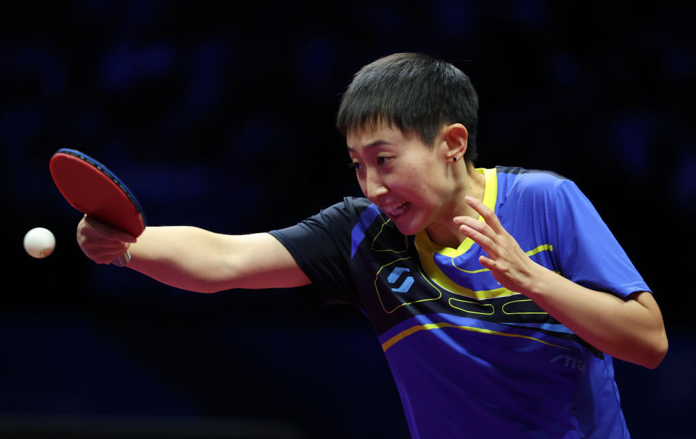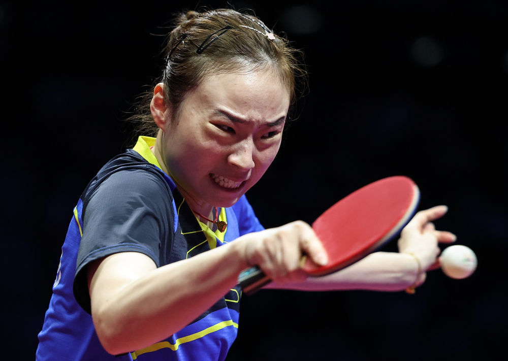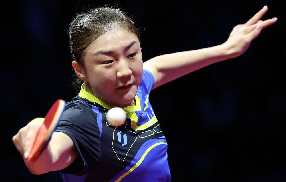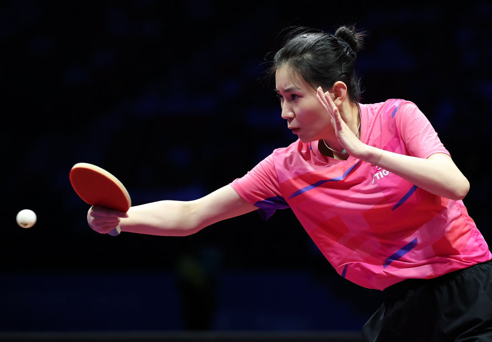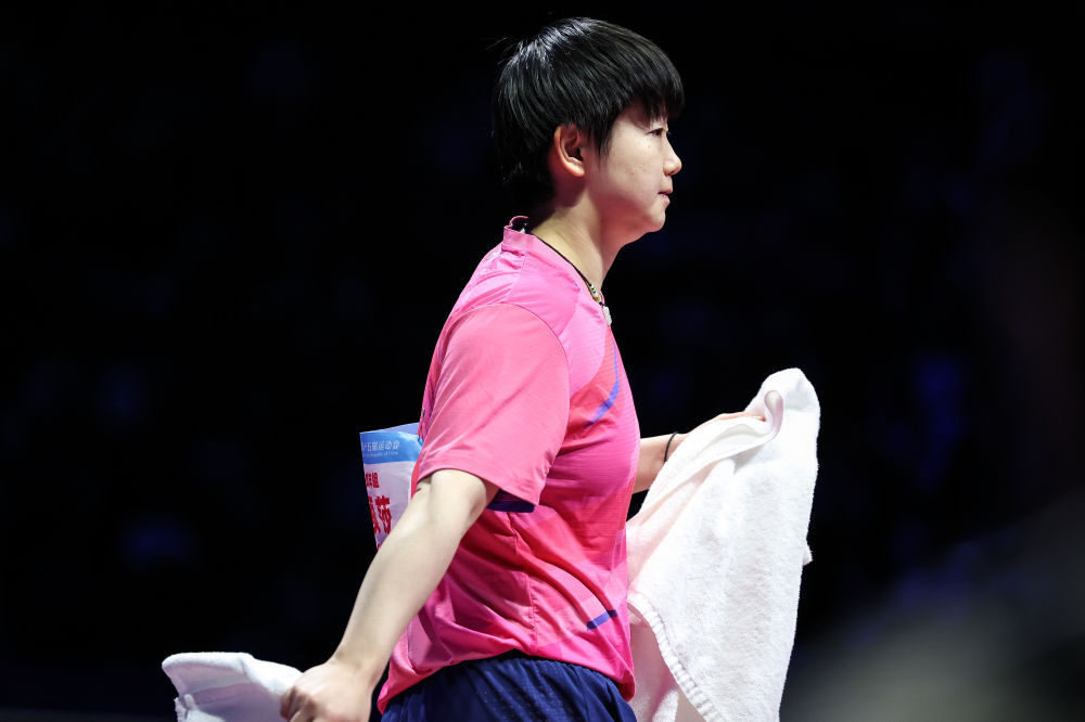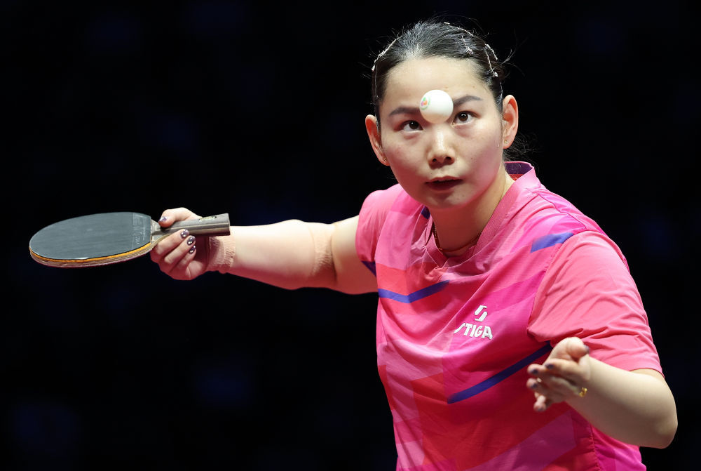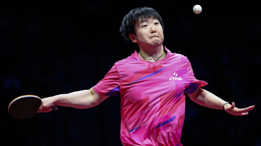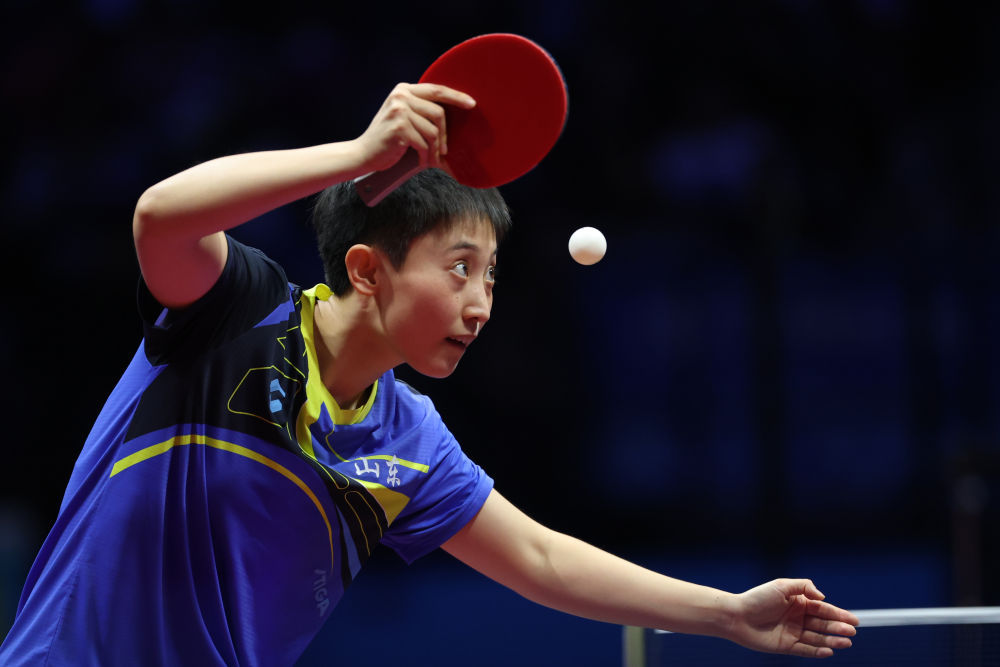 ↑ 山东队选手王晓彤在女单比赛中回球。她0比3不敌河北队选手孙颖莎。 新华社记者 梁旭 摄