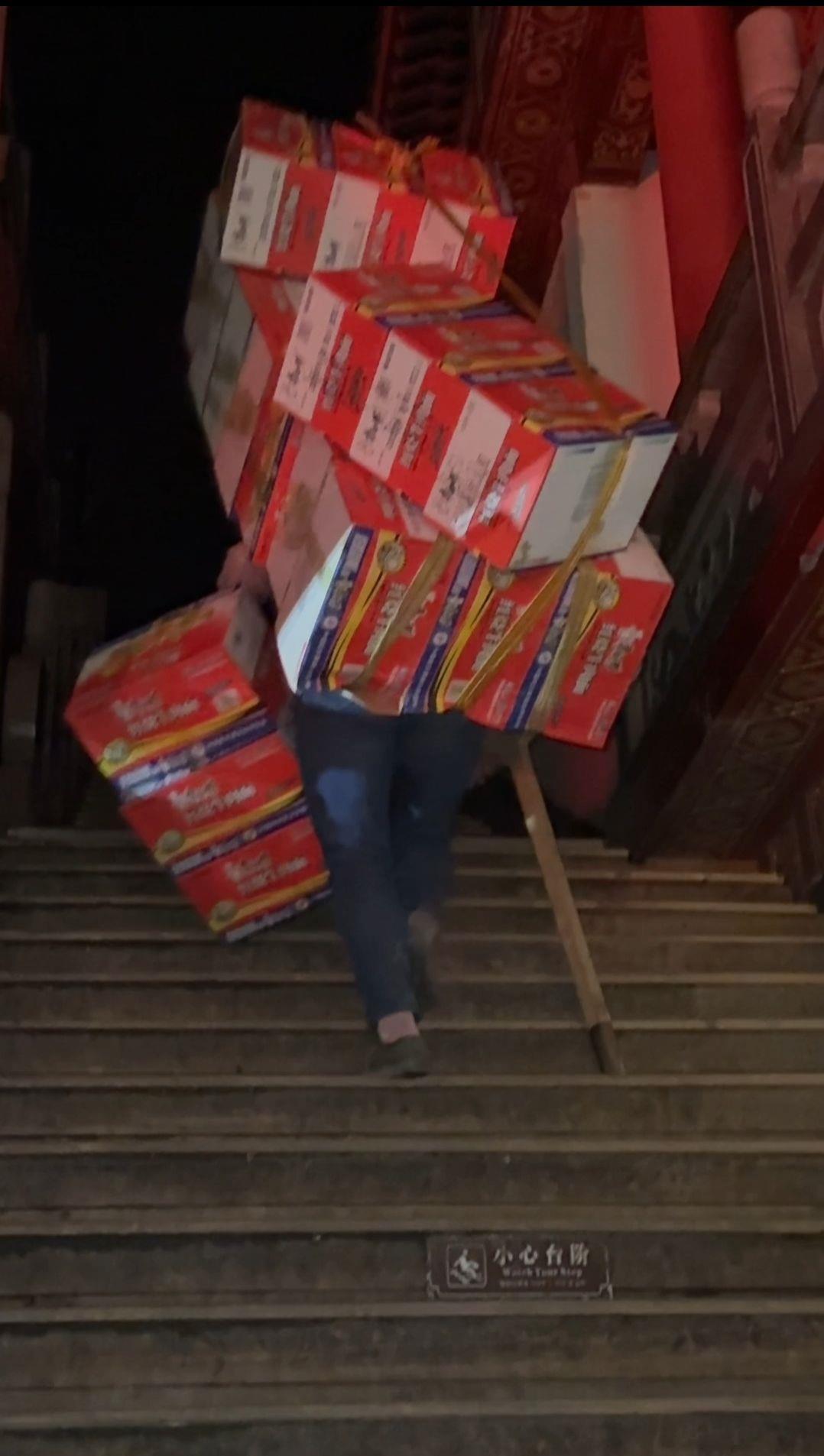 河南洛阳老君山,以其壮丽的风光吸引着西面八方的游客,这里有一群人常年在山上工作,他们背上比自己身高还高的几个大箱子或者几百斤重的石料艰难前行,弯腰穿行在游客间,上上下下一路大几百米,一趟一趟地向山顶运送着物资……近日,一位女搬山工夜送物料的一段视频,让网友们认识了这个群体,同时也让大家看到了他们的艰辛。为了让家人过上更好的生活,这位女搬山工每天早上5点起床,晚上有时要干到12点钟,11年如一日。