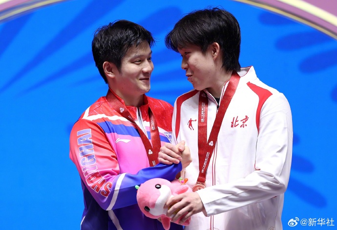 在此前11月15日全运会乒乓球男子单打半决赛中,上海队选手樊振东以4∶2战胜北京队选手王楚钦。