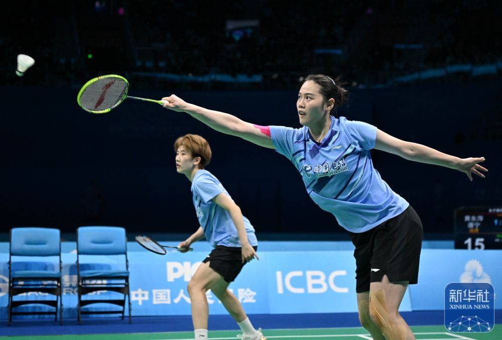 ↑ 福建队组合黄东萍/谭宁(右)在比赛中。新华社记者 李紫恒 摄