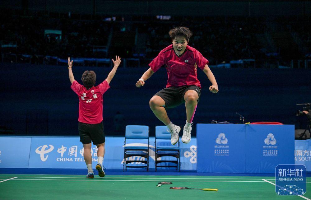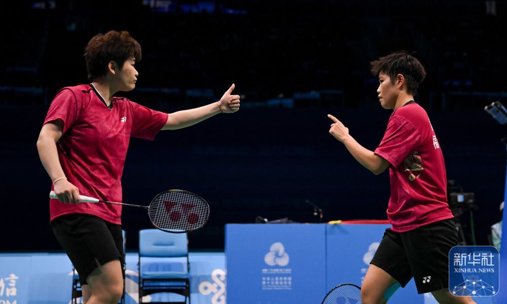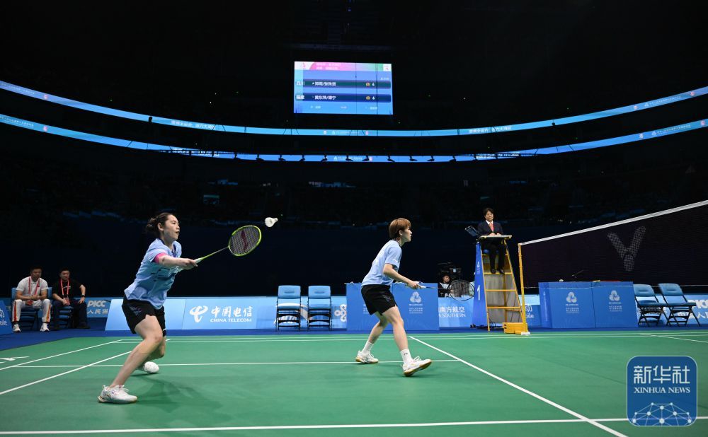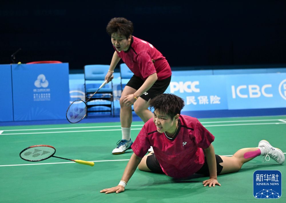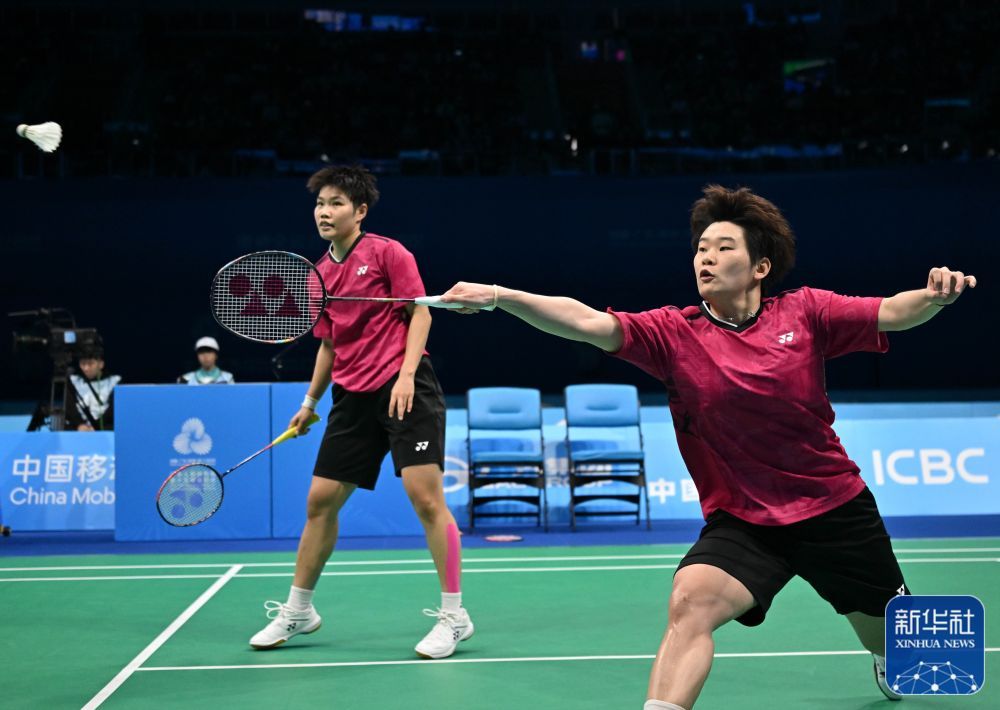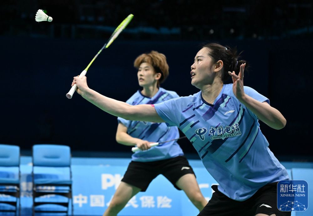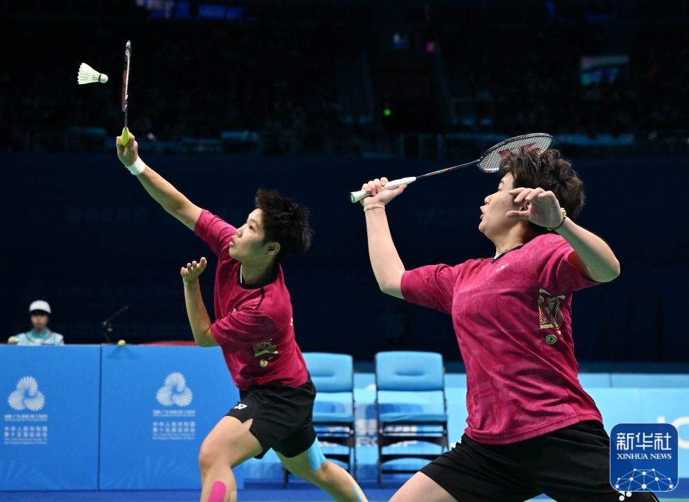 ↑ 四川队组合郑雨(左)/张殊贤在比赛中。新华社记者 陈思汗 摄