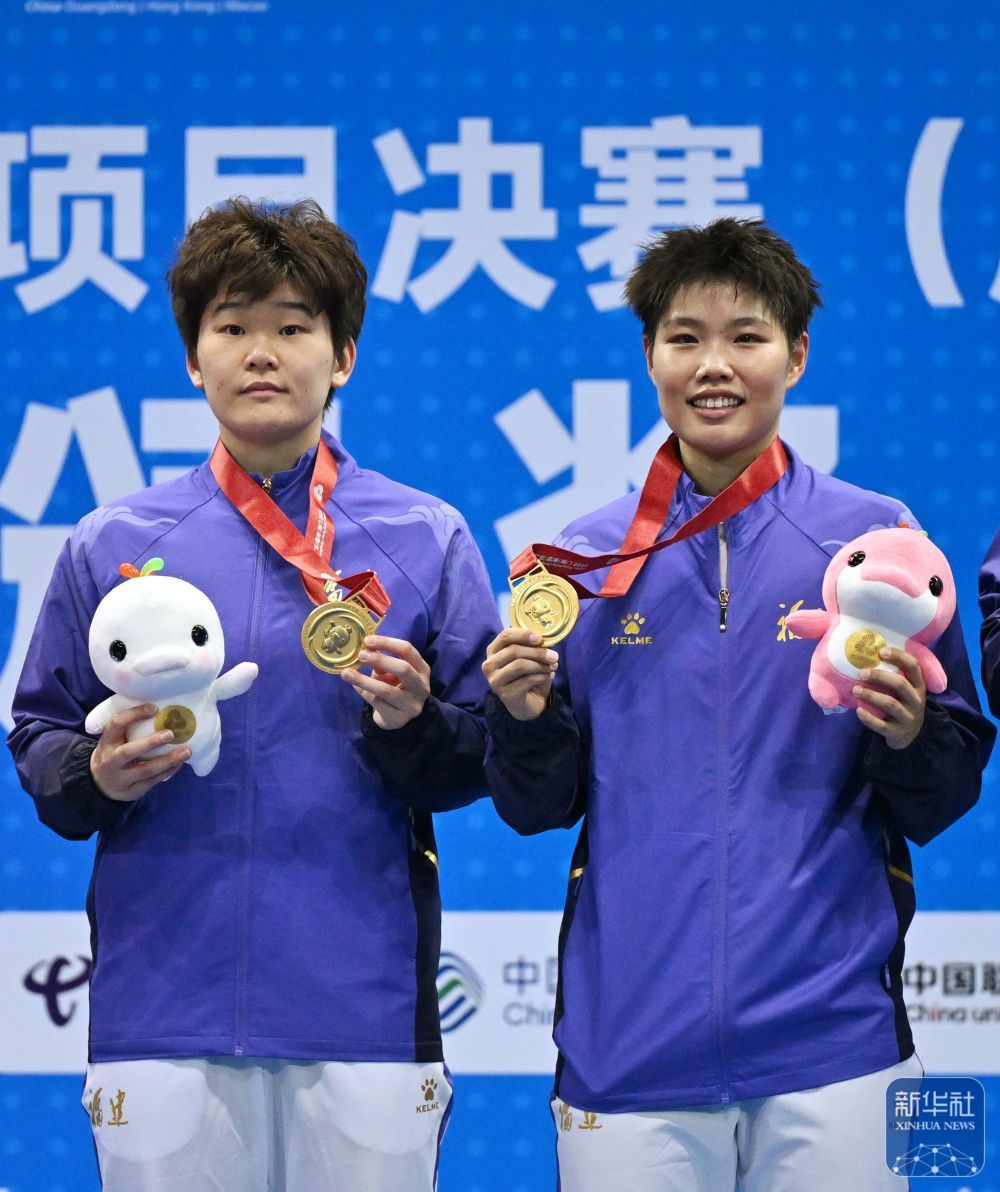 ↑ 冠军福建队组合黄东萍/谭宁(左)在颁奖仪式上。新华社记者 李紫恒 摄