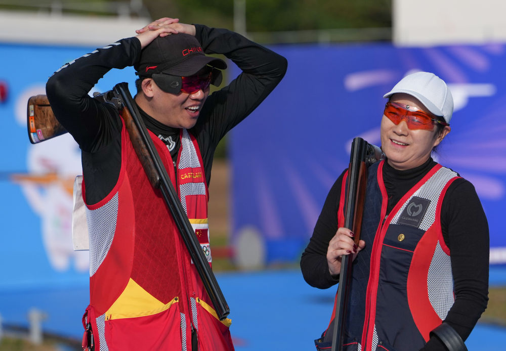 新华社广州11月20日电(记者王楚捷、赵紫羽)第十五届全国运动会射击飞碟项目多向混合团体决赛20日在广州飞碟训练中心展开角逐。由上届全运会多向男、女冠军“联手出战”的湖南队郭雨浩/刘英姿以44中夺得冠军,陕西队肖金佳/段宇薇以42中摘得银牌,山东队于海成/柳珊珊获得第三名。