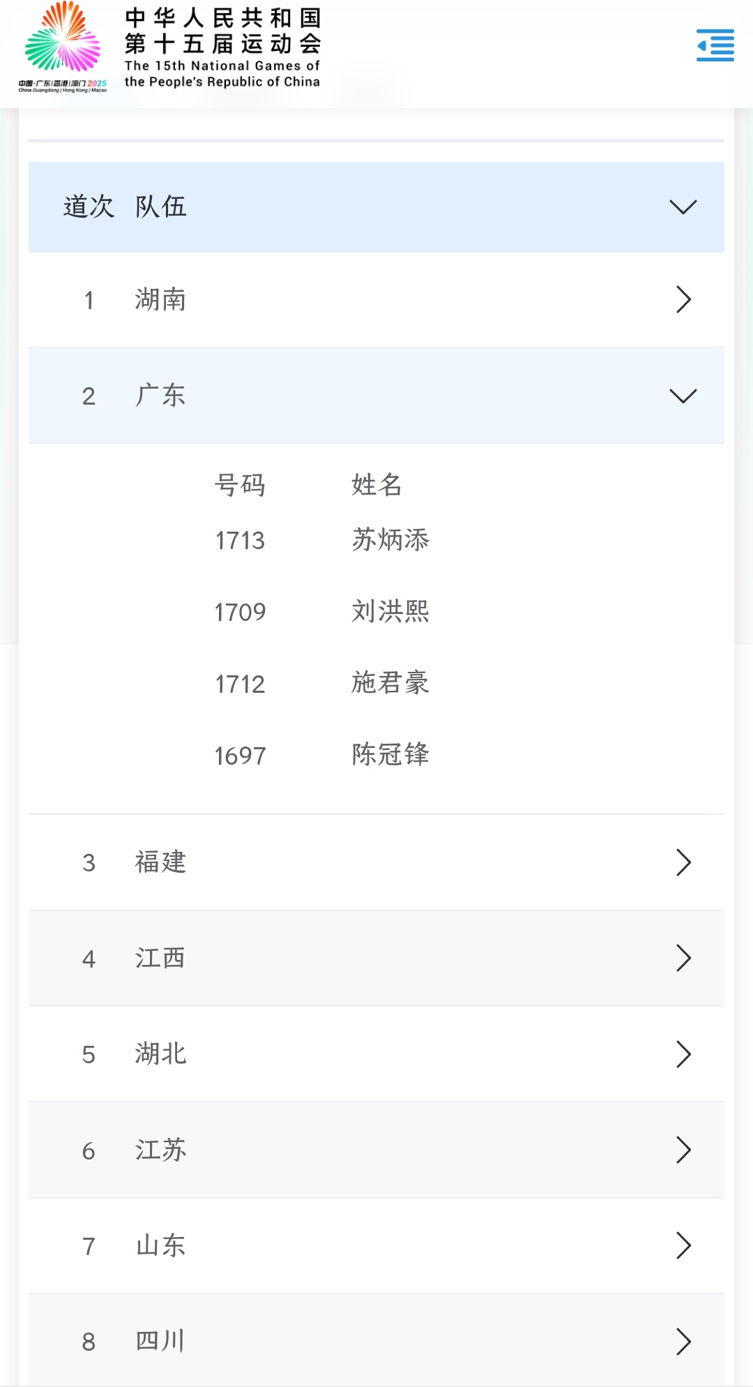 11月20日晚,第十五届全运会田径男子4×100米决赛将在广东奥体中心体育场进行。刚刚,参加决赛的各支队伍公布了本场比赛的出场名单,男子100米亚洲纪录保持者、广东队名将苏炳添将担任广东队的第一棒。本场比赛也将是这位36岁的亚洲飞人参加的最后一场比赛。