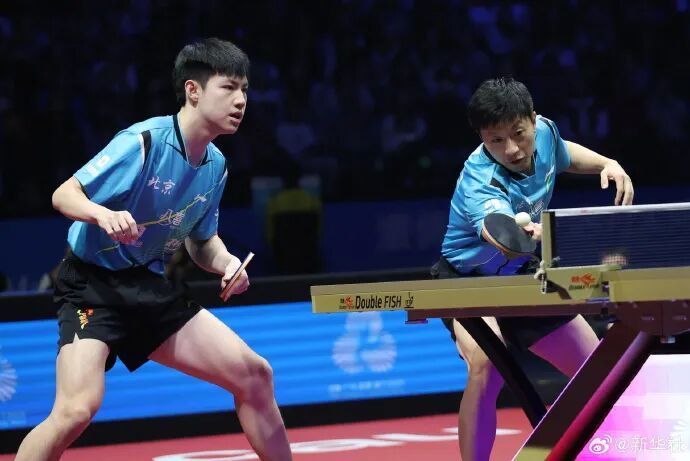 在今天稍早结束的第一盘比赛中,马龙/黄友政11-9、5-11、11-4、11-7许昕/周恺。