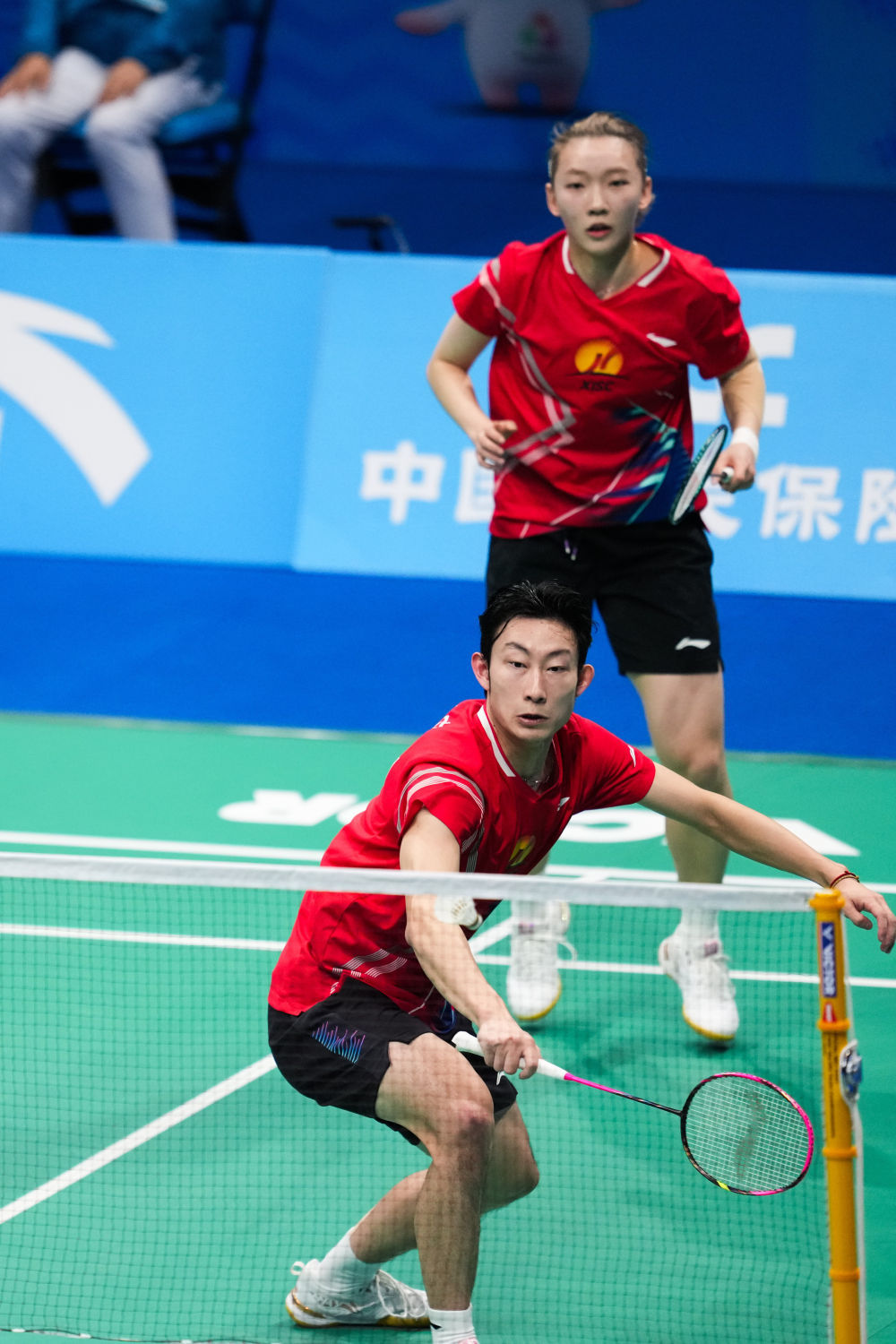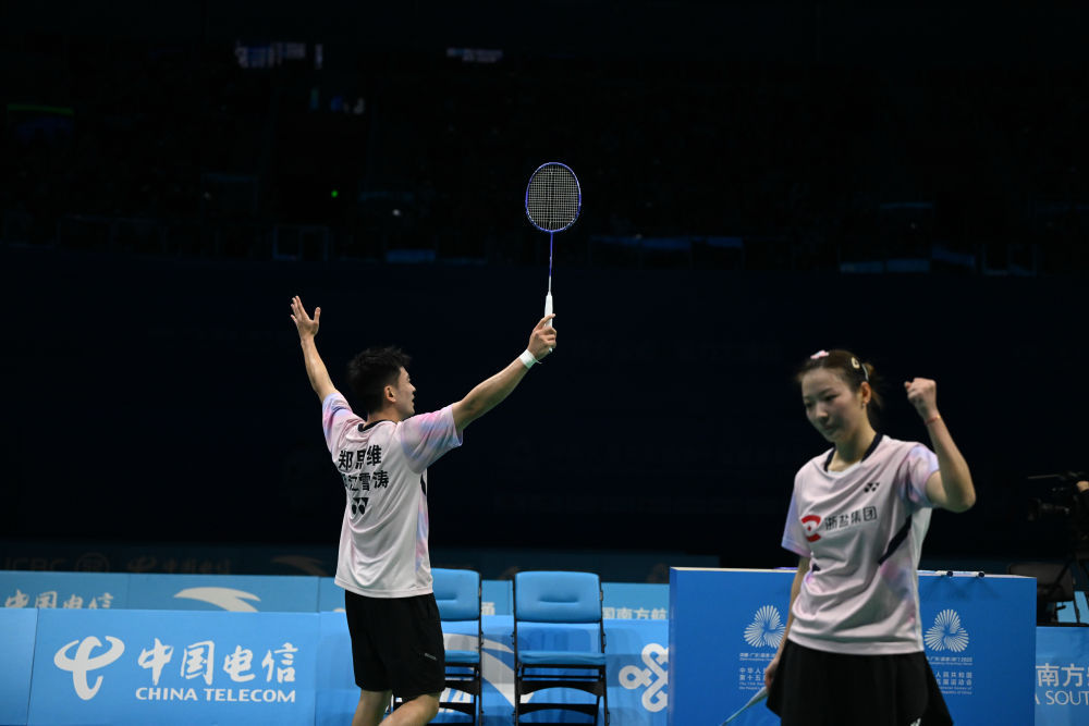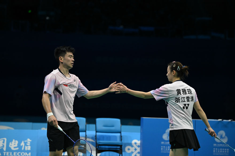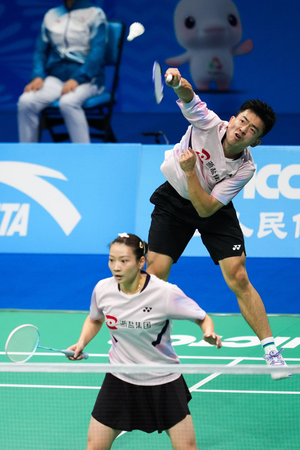 11月20日,在广东深圳举行的第十五届全国运动会羽毛球混合双打决赛中,浙江队组合郑思维/黄雅琼2比0战胜湖南队组合周志宏/魏雅欣,获得冠军。