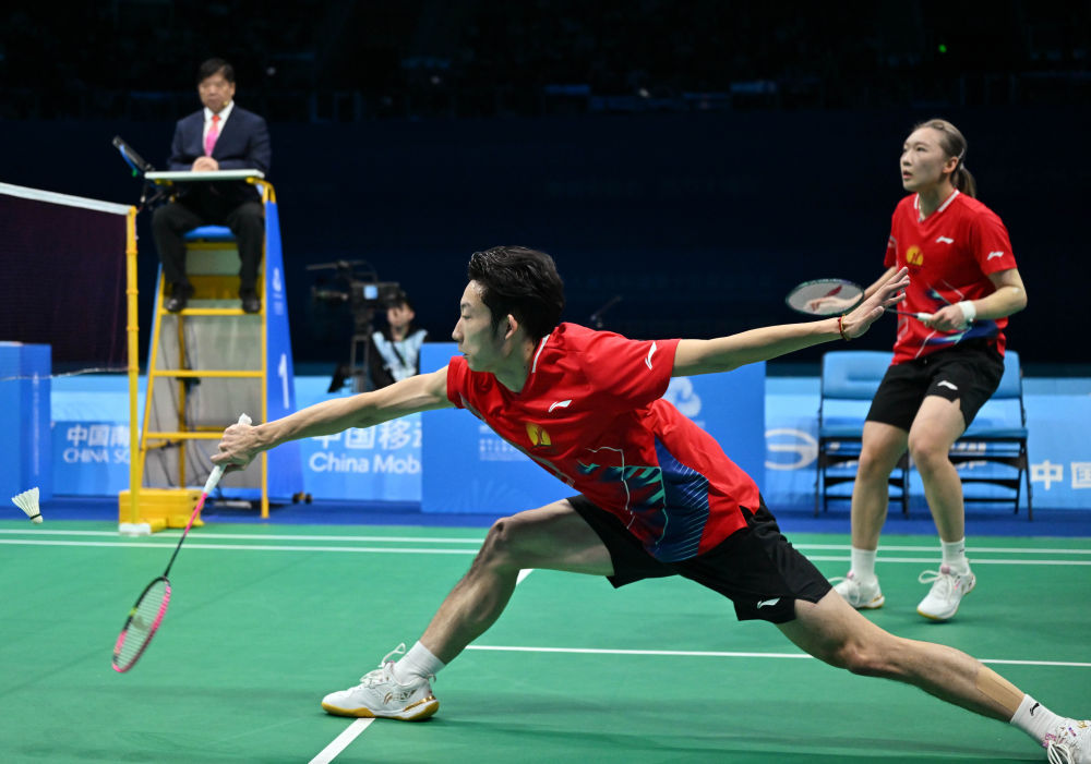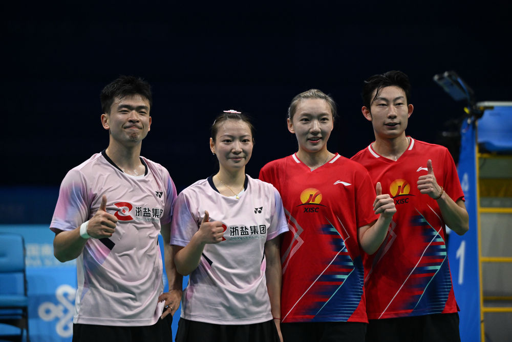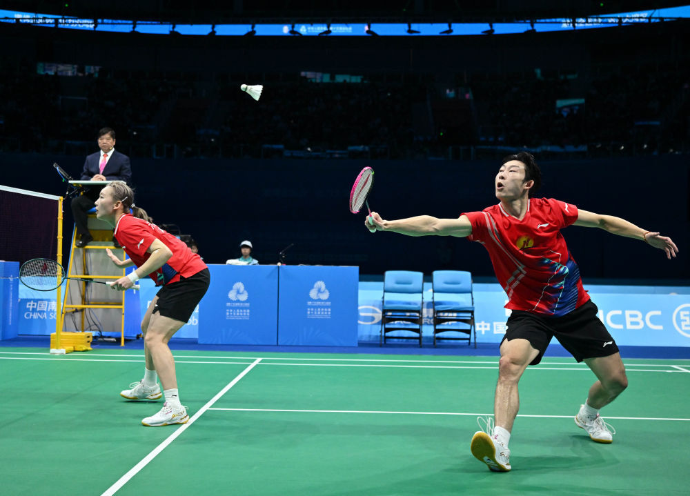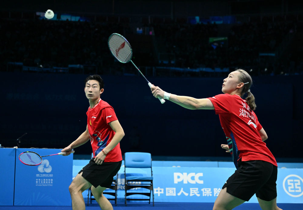 11月20日,在广东深圳举行的第十五届全国运动会羽毛球混合双打决赛中,浙江队组合郑思维/黄雅琼2比0战胜湖南队组合周志宏/魏雅欣,获得冠军。