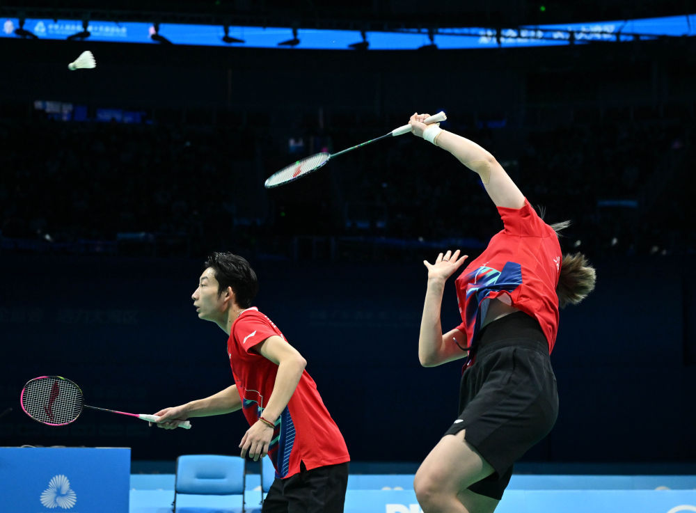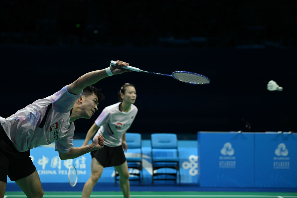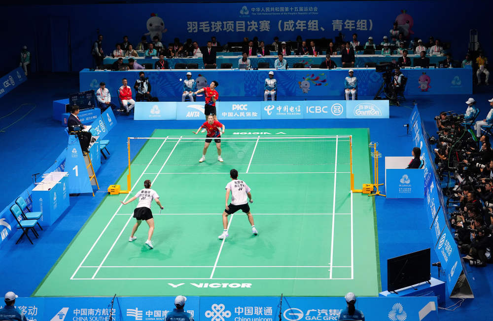 ↑ 这是第十五届全国运动会羽毛球混合双打决赛现场。 新华社记者 陈思汗 摄