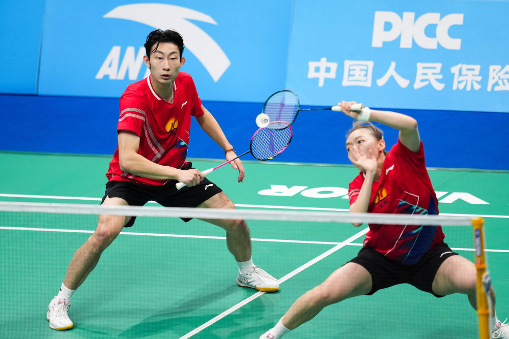 ↑ 浙江队组合郑思维(右)/黄雅琼在比赛中。 新华社记者 李紫恒 摄