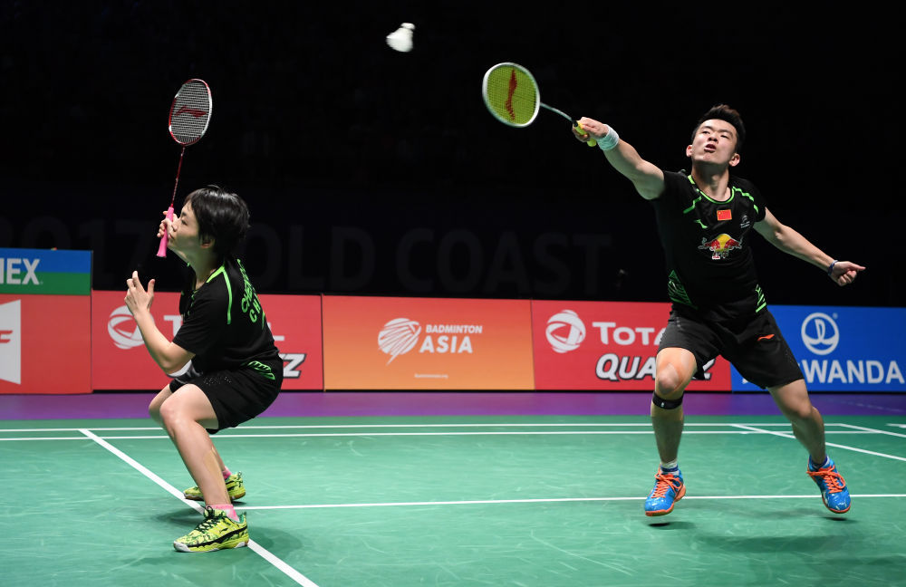 2017年5月27日,苏迪曼杯世界羽毛球混合团体锦标赛半决赛上,中国队组合郑思维(右)/陈清晨在混双比赛中。新华社记者 吕小炜 摄
