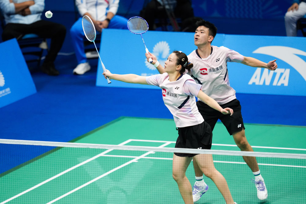 11月20日,浙江队组合郑思维/黄雅琼(前)在比赛中。新华社记者 陈思汗 摄