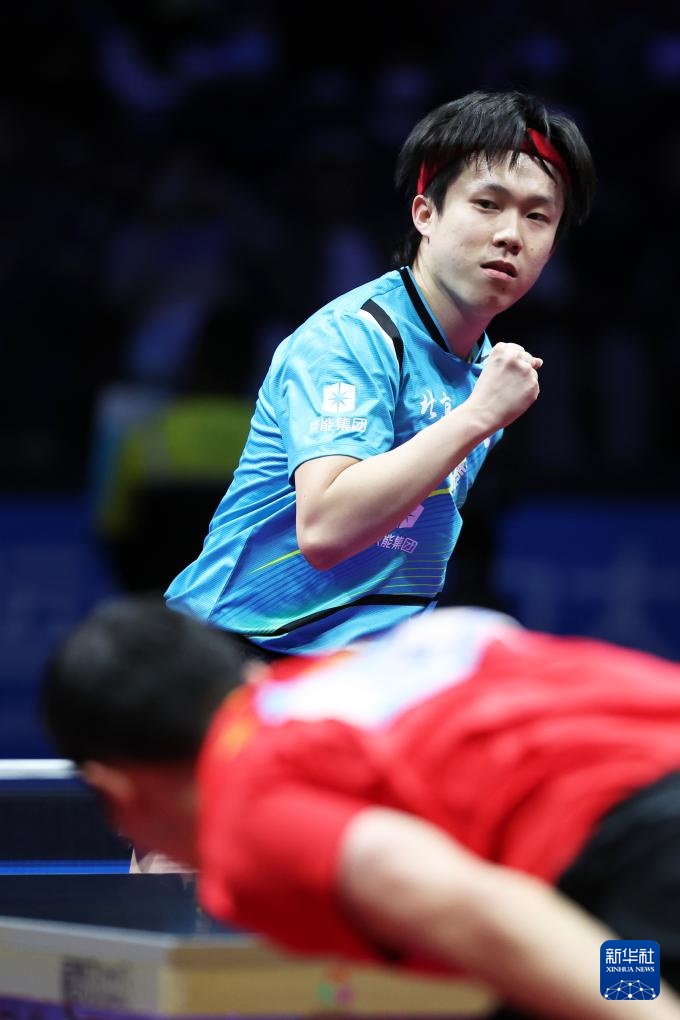 11月20日,北京队选手王楚钦在赢得男单比赛后。他3比0战胜上海队选手许昕。