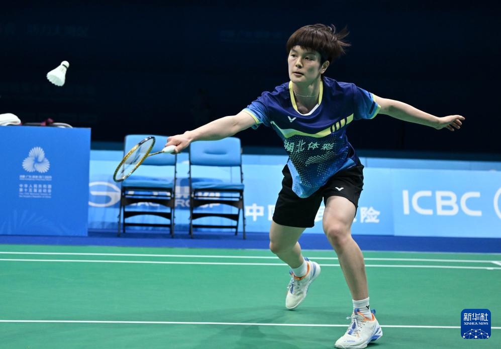 当日,在广东深圳举行的第十五届全国运动会羽毛球女子单打决赛中,湖北队选手王祉怡2比1战胜浙江队选手陈雨菲,获得冠军。