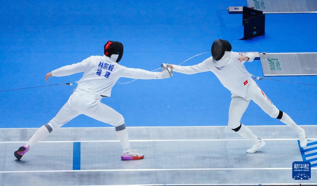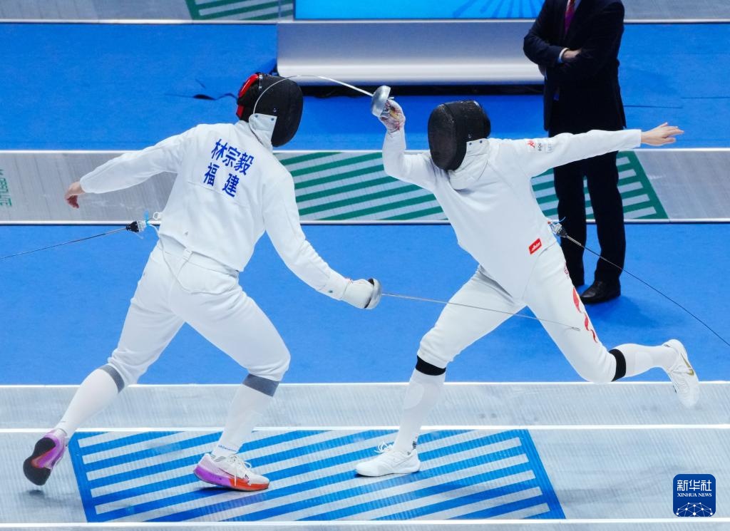 11月20日,辽宁队选手杨丰名(右)和福建队选手林宗毅在比赛中。