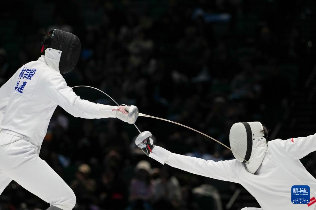 11月20日,辽宁队选手于梦想(右)和福建队选手林宗毅在比赛中。