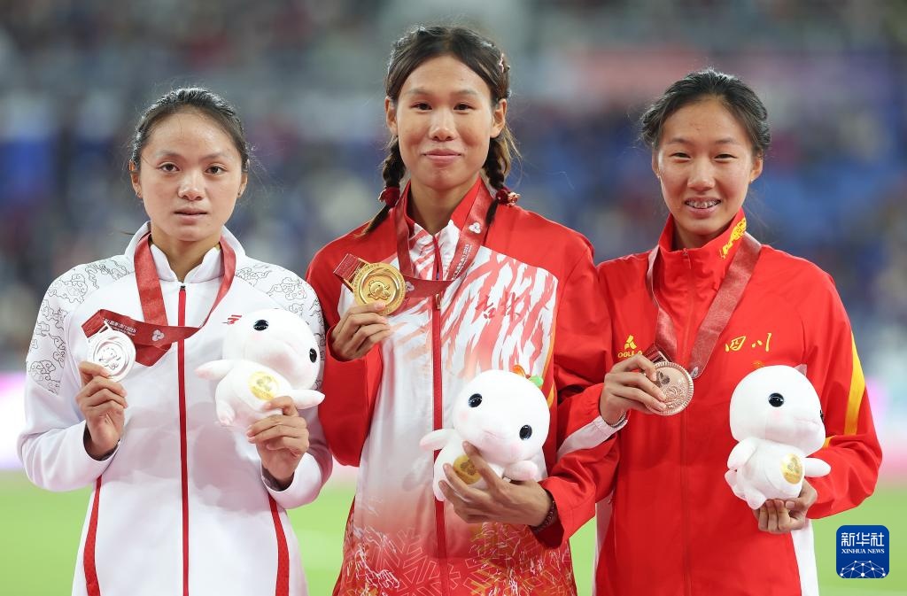 11月20日,获得冠军的吉林队选手李春辉(中)、获得亚军的云南队选手吴洪娇(左)、获得季军的四川队选手陈禹璇在颁奖仪式上合影。