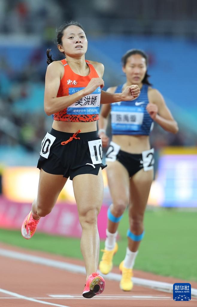 11月20日,云南队选手吴洪娇(左)在比赛中冲线。她获得亚军。