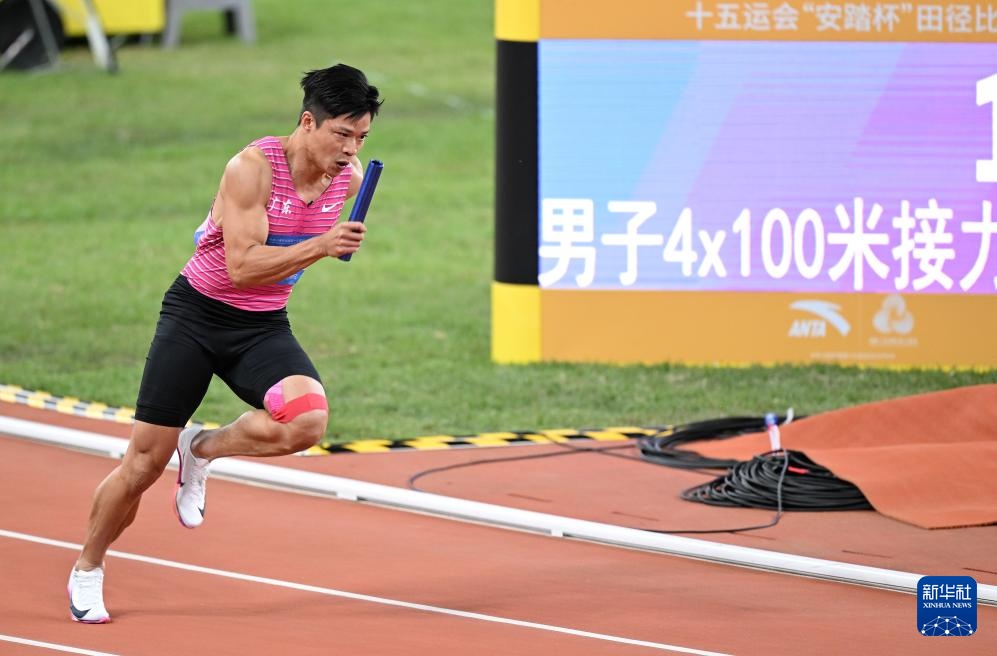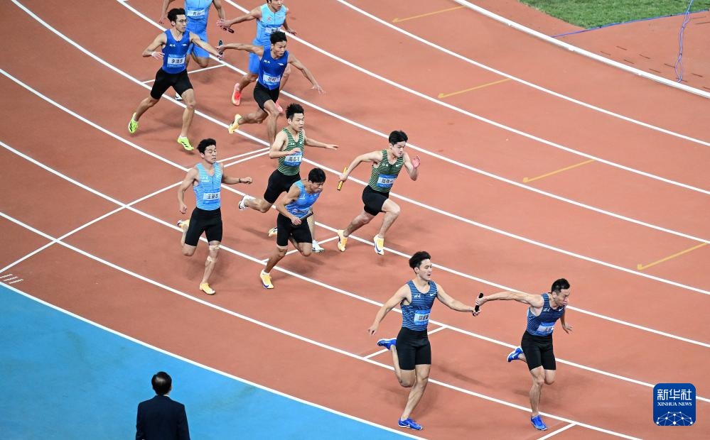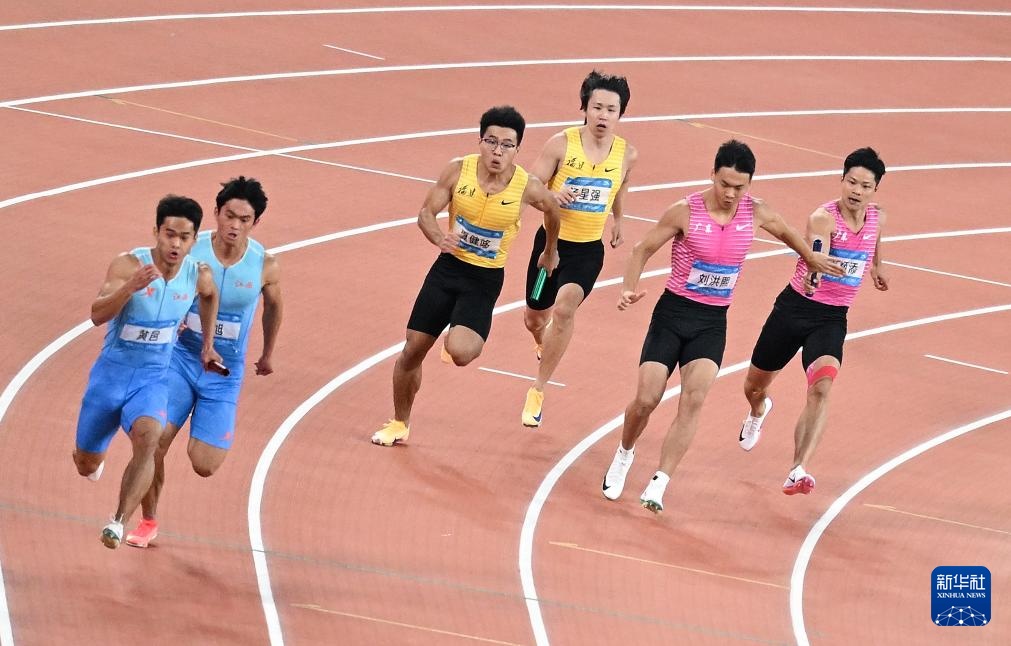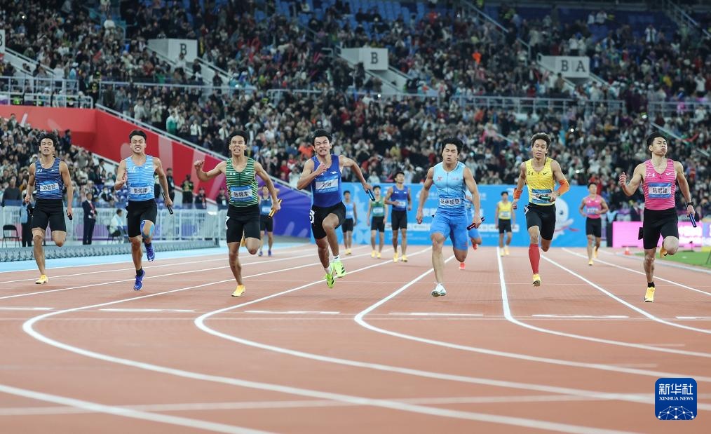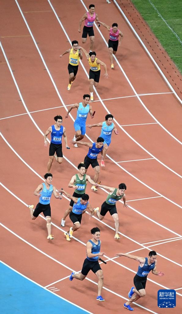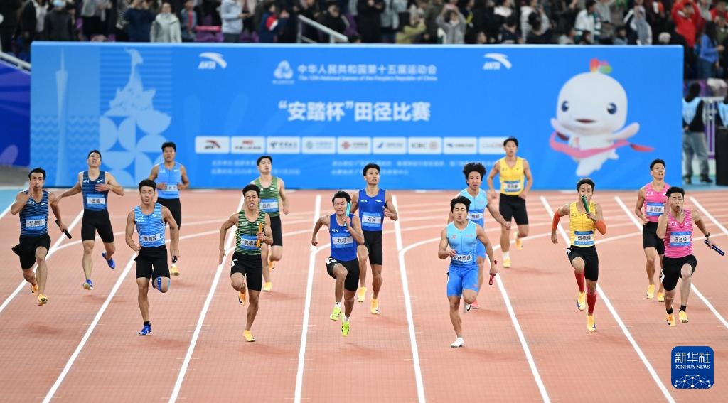 当日,第十五届全国运动会田径项目男子4X100米接力决赛在广州举行。