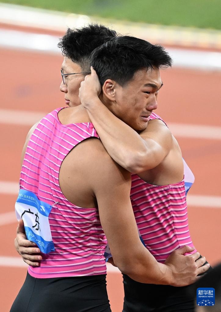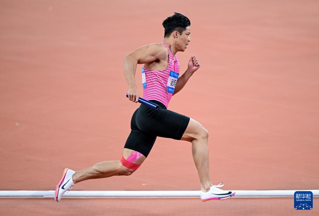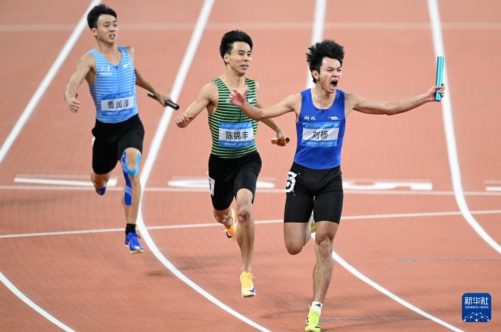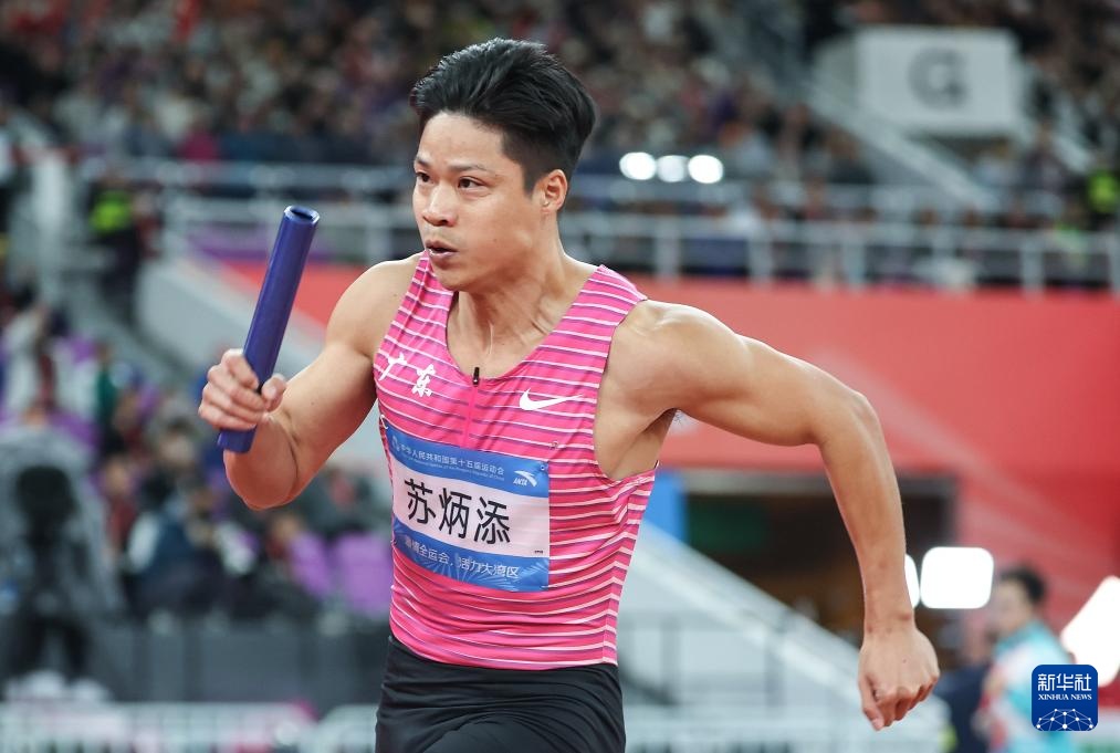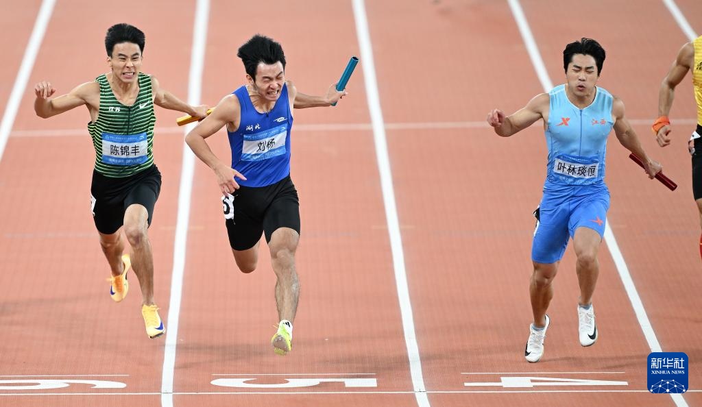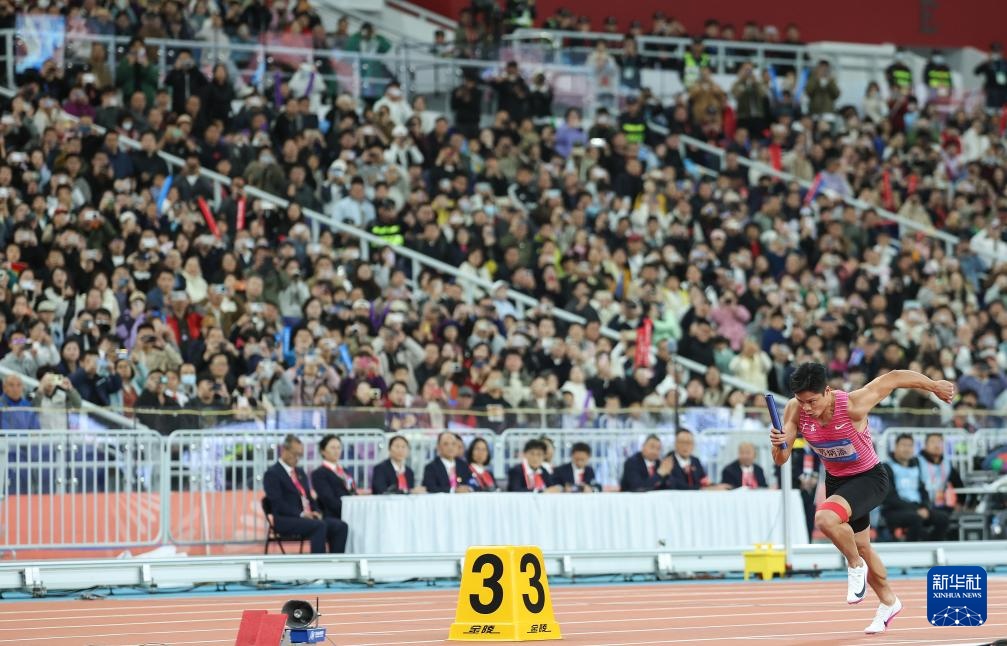 当日,第十五届全国运动会田径项目男子4X100米接力决赛在广州举行。