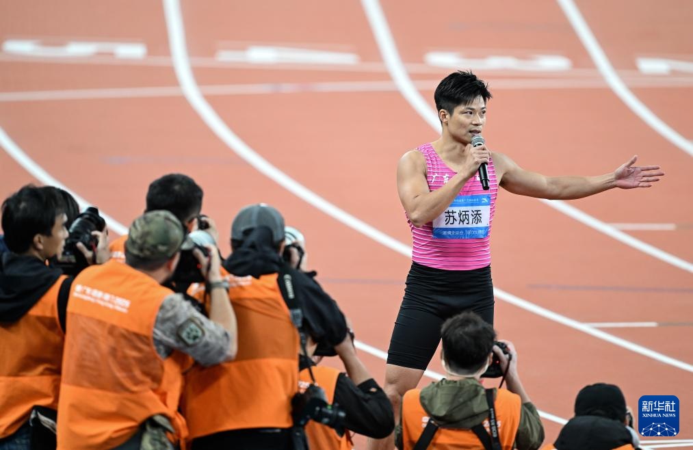 11月20日,广东队选手苏炳添在比赛后发表感言。