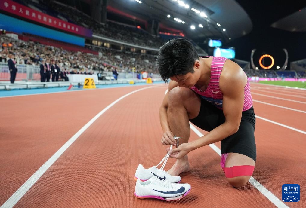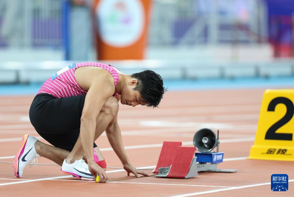 11月20日,广东队选手苏炳添在比赛前准备。