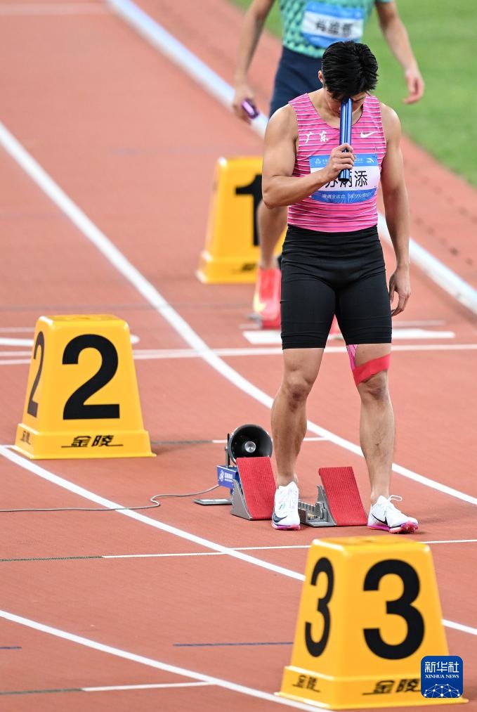 11月20日,广东队选手苏炳添在比赛前。