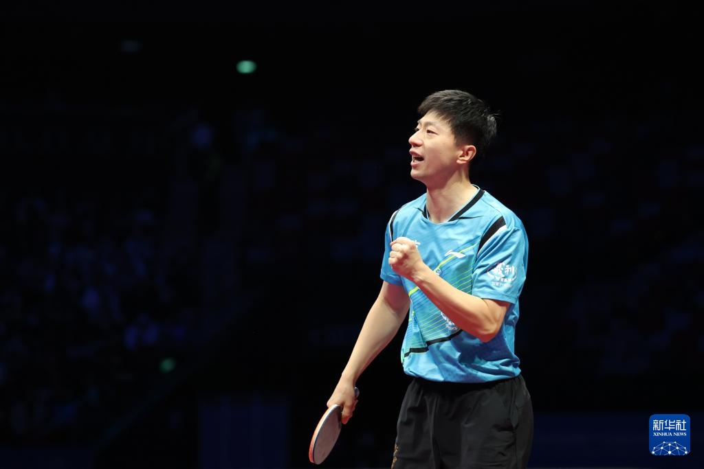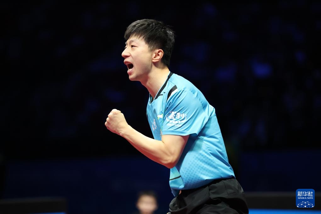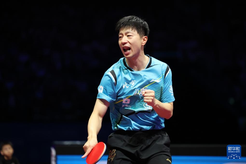 11月20日,北京队选手马龙在男单比赛中庆祝得分。他对阵上海队选手周恺。